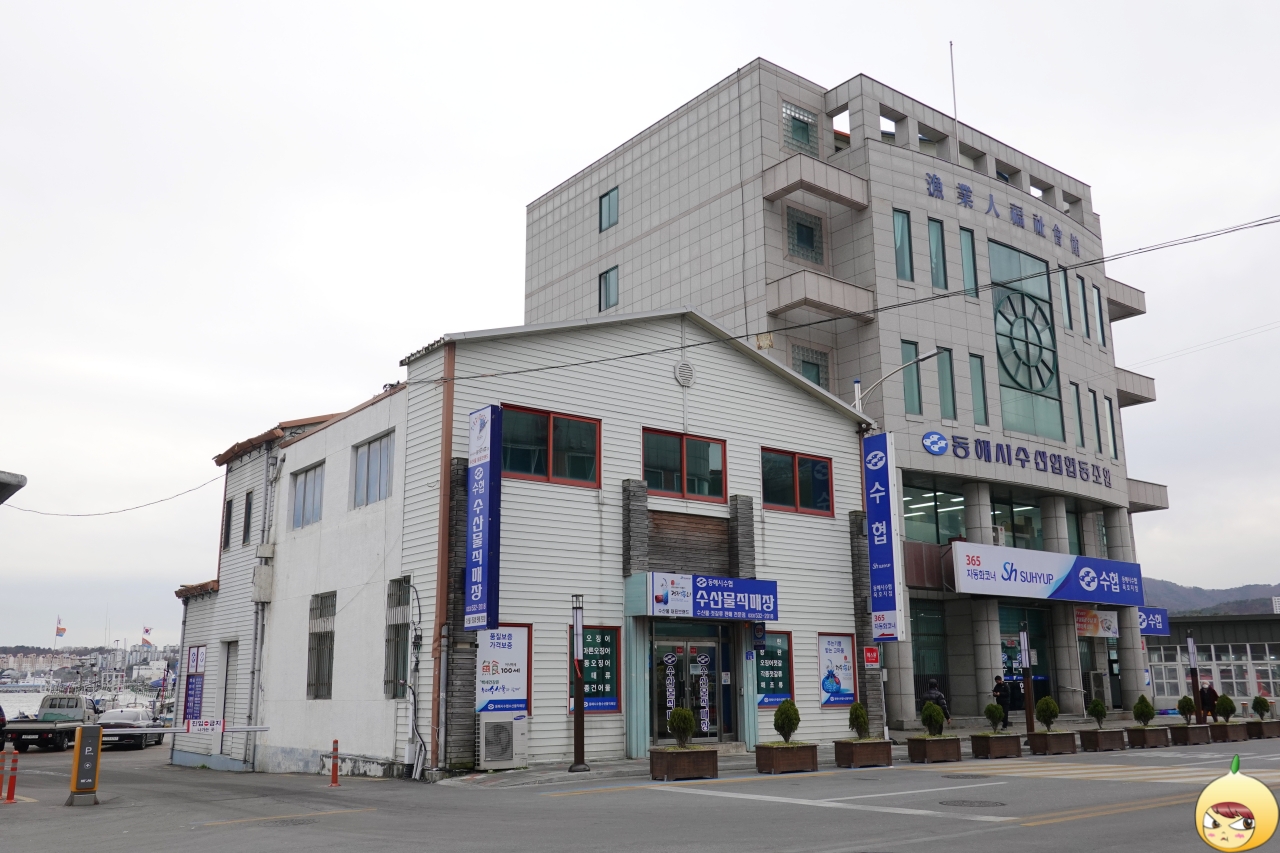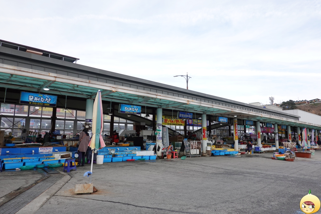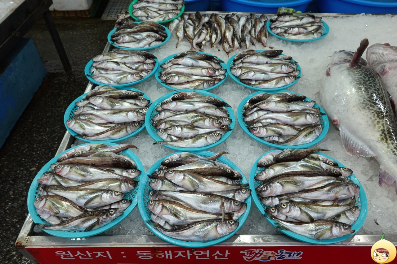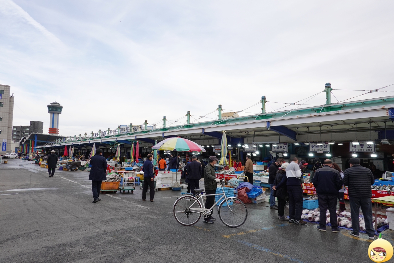 항구가 있으니 어김없이 시장도 있다. 왼쪽은 활어판매장이고, 오른쪽은 수산시장이다. 이래서 산지 산지 하나보다. 비릿한 짠냄새이 나지만, 절대 상하거나 썩은 냄새가 아니다. 활어회를 떠서, 근처에 있는 묵호시장에서 상차림비를 내고 먹으면 된다.