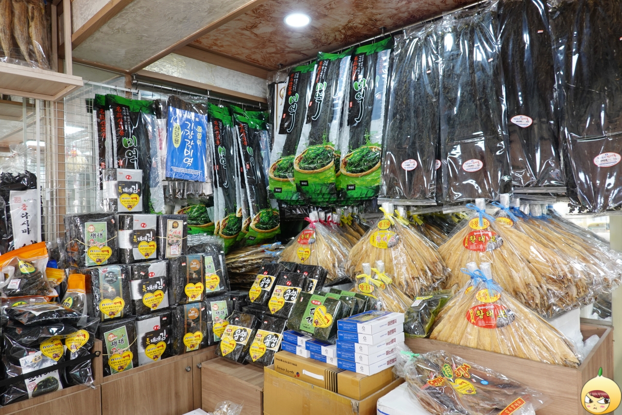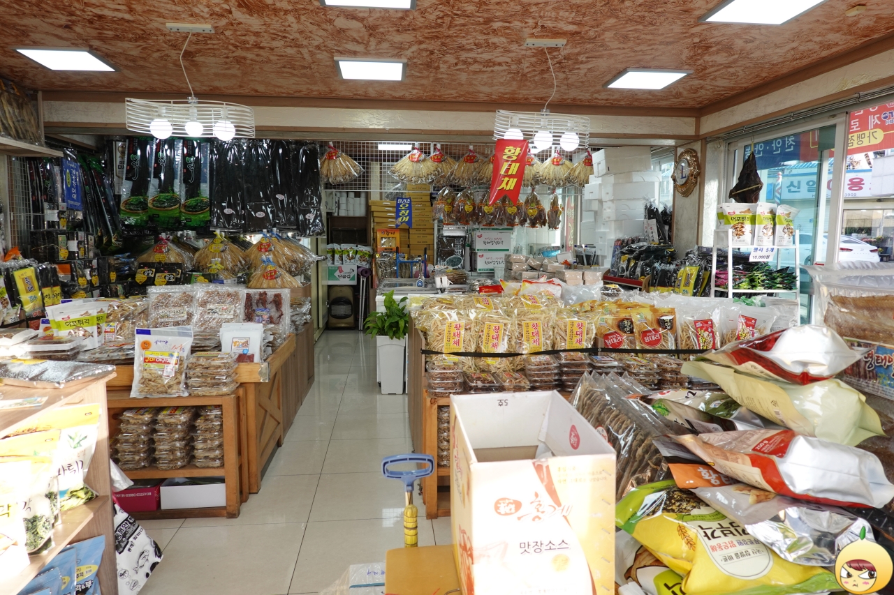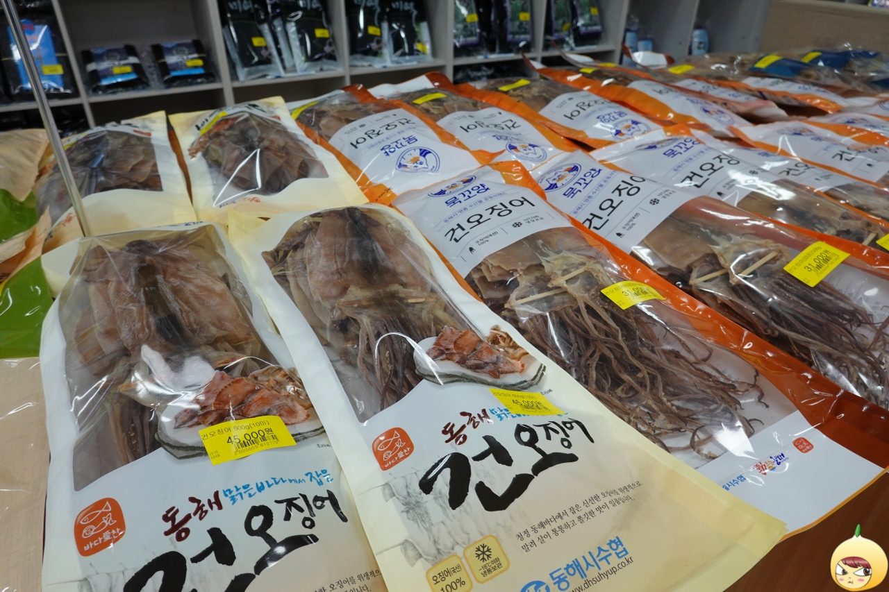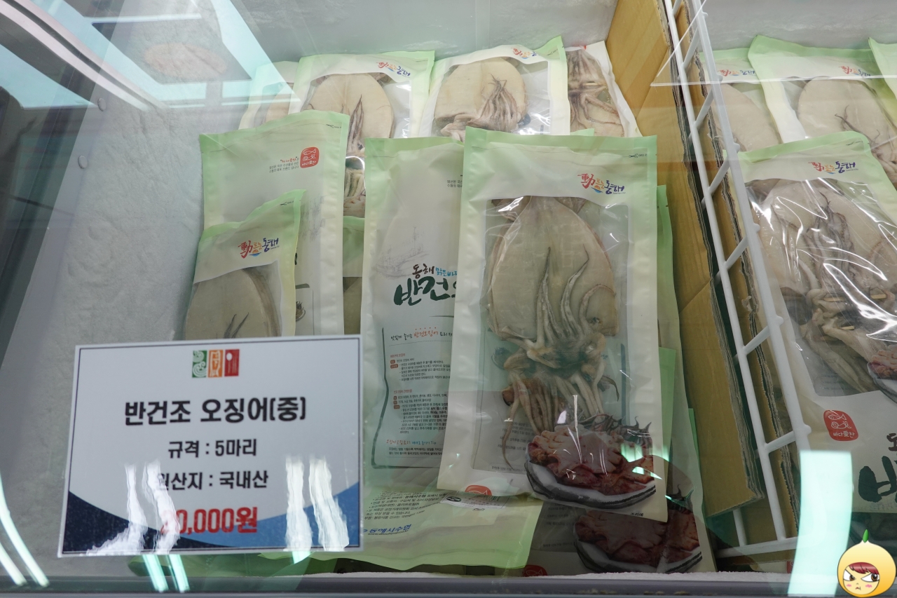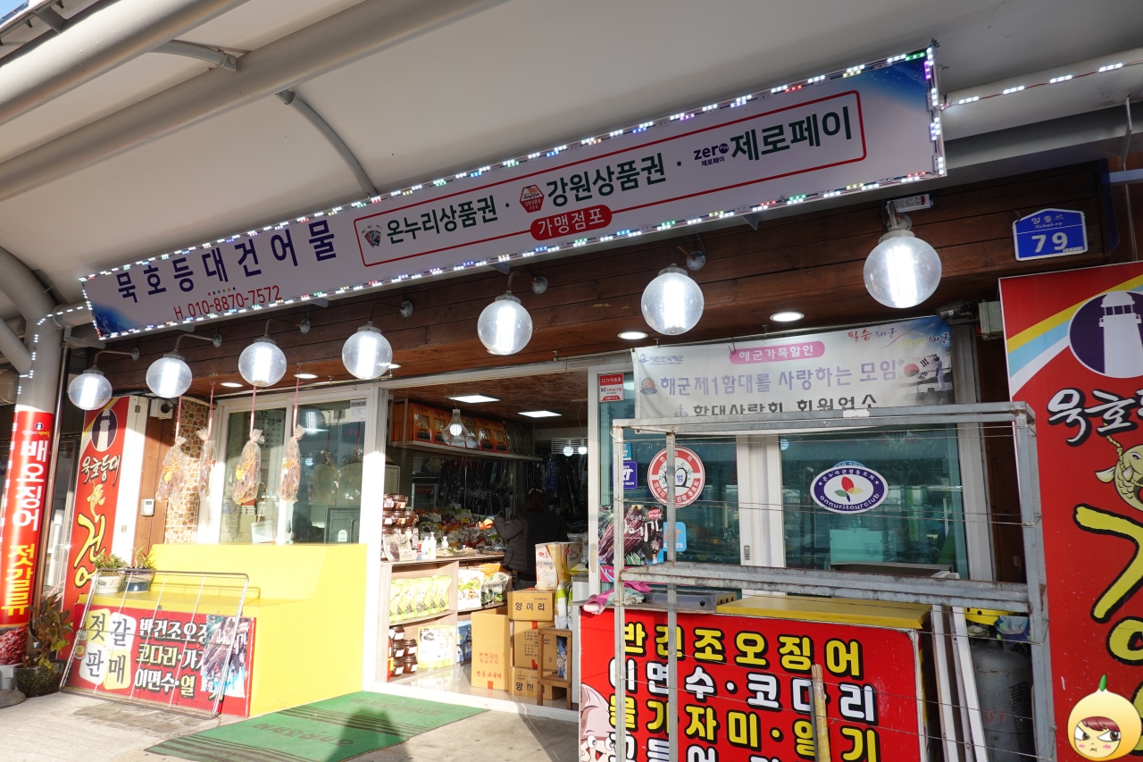 원래는 수협에서 하는 수산물 직매장에서 반건조 오징어를 구입하려고 했다. 그런데 둘째날 일출을 보고 난 후 첫번째로 문을 연 상점이 묵호등대건어물이다. 어떠한 검색도, 지인 찬스도 없이, 그냥 감으로 들어갔다.