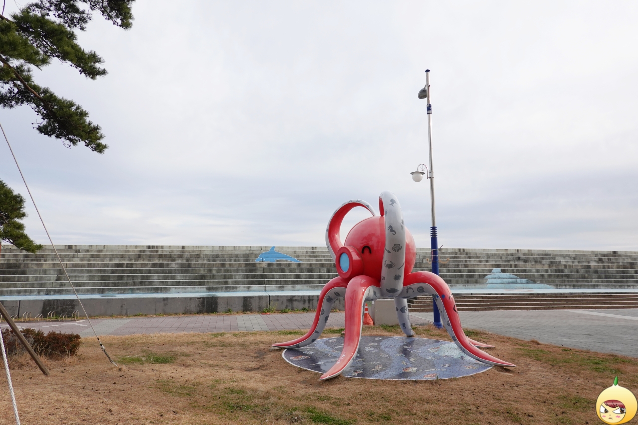 묵호항 일출명소는 문어 조형물이 있는 곳이라는데, 설마 여기는 아닐거다. 왜냐하면 그 문어는 살짝 무섭게 생겼는데, 이 문어는 귀엽게 생겼으니깐. 그래도 혹시 몰라 계단 위를 올라갔다. 방파제 사이로 세찬 파도가 몰아친다. 일출은 볼 수 있을지 모르지만 가려고 했던 명소는 아니다.