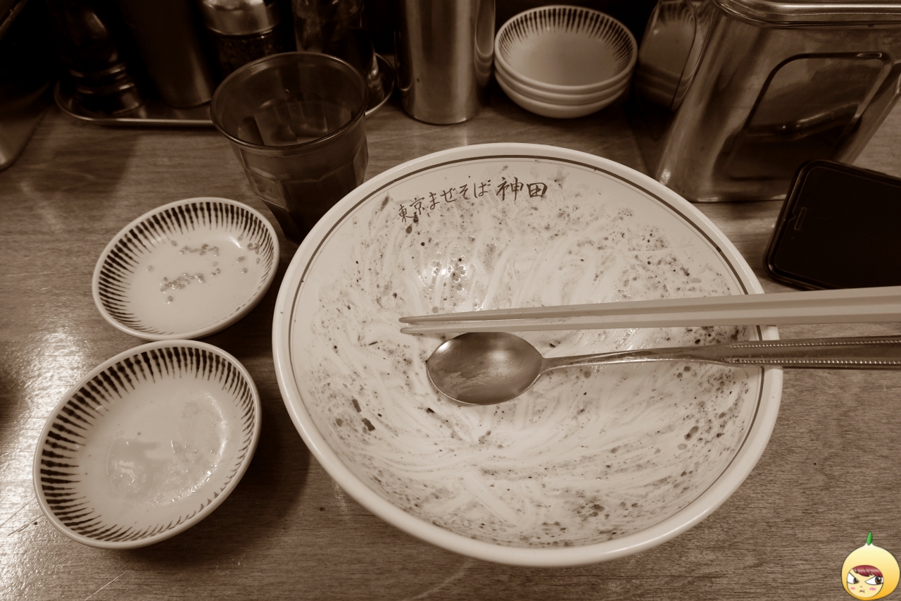 반 정도 먹은 후, 식초를 넣어서 먹으면 좋다고 해서 다시마 식초를 넣었다. 짬뽕에 식초를 넣으면 국물이 깔끔해지는데, 마제소바는 끝에 느껴지는 텁텁함이 덜해졌다고 해야 할까나. 넣기 전과 후를 잘 모르겠다. 담백한 음식을 좋아하는 사람에게 마제소바는 복잡한 맛이다. 그래서 무슨 맛인지 먹어도 먹어도 알 수가 없다.