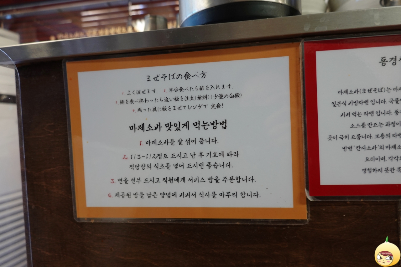 마제소바는 섞다, 비비다 라는 뜻에서 붙혀진 일본식 비빔라멘이라고 한다. 국물없는 면에 고기, 채소, 계란 등 다양한 고명과 소스를 비벼 먹는 라멘이다. 처음 왔으니, 음식에 대한 설명과 먹는 방법까지 읽고 또 읽었다.