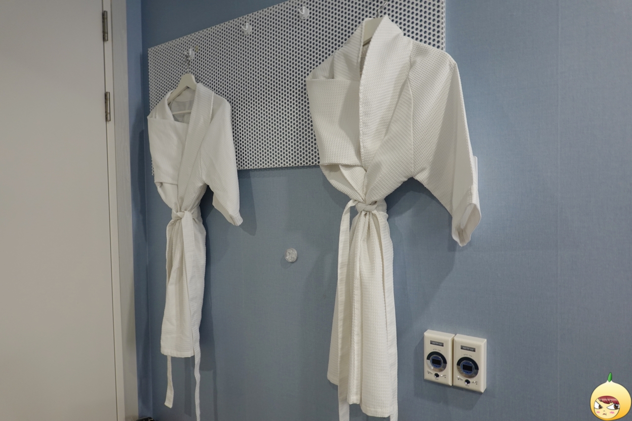 어느 브랜드인지 모르기에, 짐이 무거워도 세면도구는 다 챙겨가야 한다. 이래서 짐을 줄이고 싶어도 안된다. 욕실 앞에는 목욕가운이 있고, 그 아래 콘센트처럼 보이는 건 난방용 온도조절장치다. 에어컨은 냉방만 되므로, 난방은 저 장치를 이용해야 한다. 가까이 가서 보면 온도조절기가 있다. 전화로 카드키를 받을때, 온도를 30도로 맞춰두고 나가면 돌와왔을때 방이 따뜻해져 있을 거라고 알려줬다.