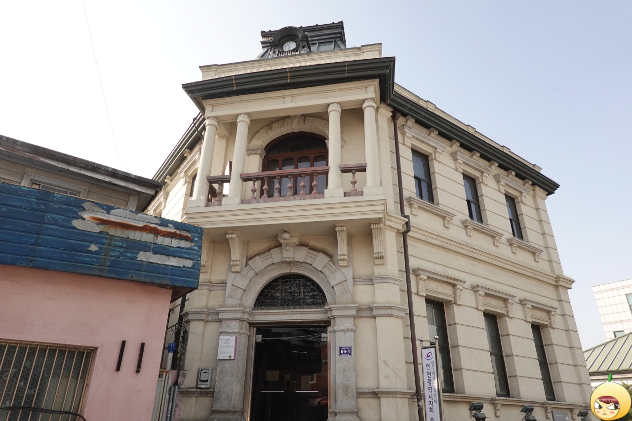 구) 인천일본제58은행지점 건물이다. 일본 오사카에 본점을 둔 일본 제58은행은 인천 전환국에서 주조되는 신화폐와 구화폐의 교환을 목적으로 1892년 인천에 지점을 설치했다. 인천에 이어 부산과 서울에도 지점을 두고, 양국에서 송금한 상품 대금의 결재와 무역 금융에 주력했다고 한다.