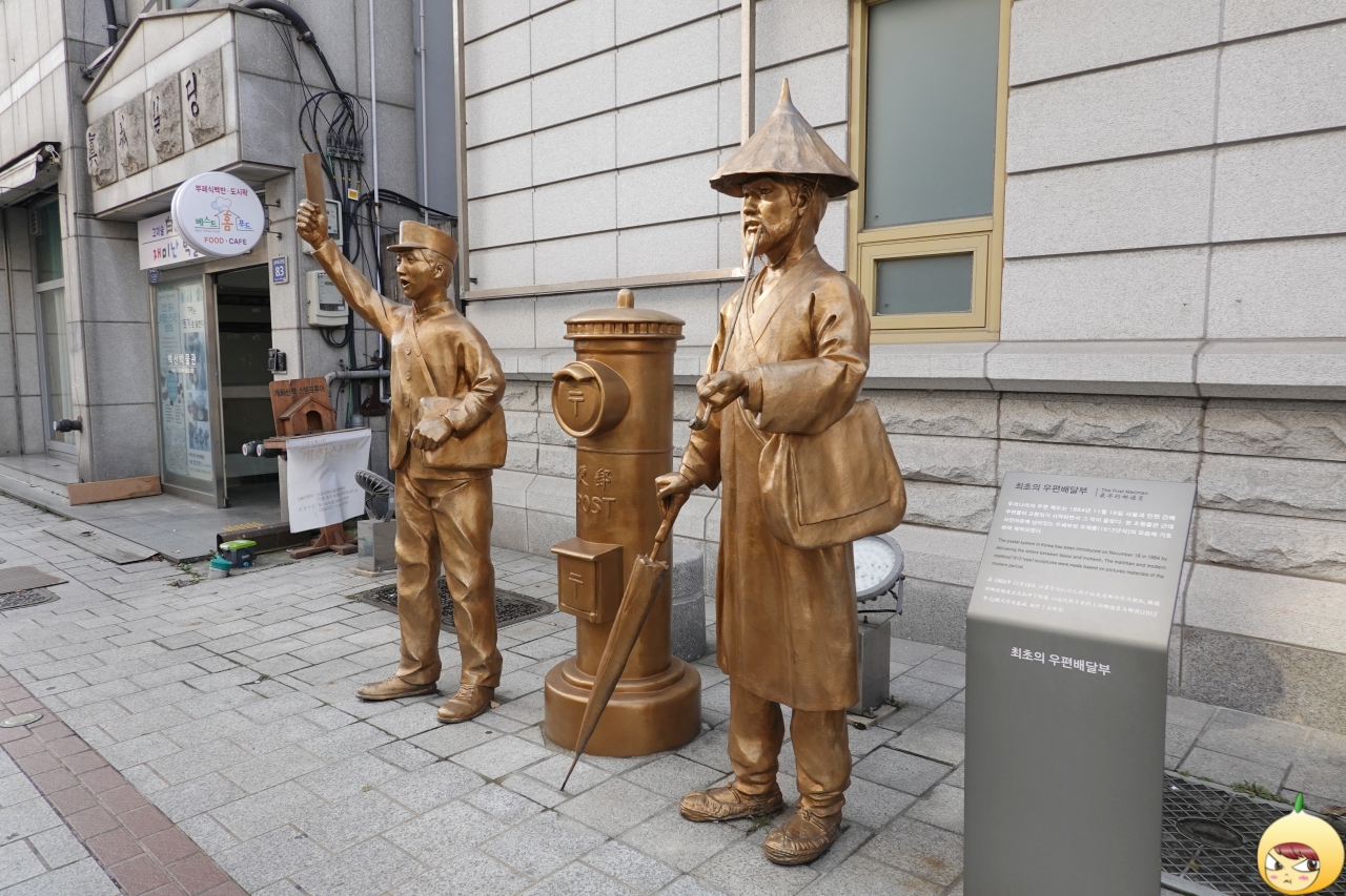 우라나라의 우편제도는 1884년 11월 18일 서울과 인천 간에 우편물이 교환되기 시작하면서 그 막이 올랐다고 한다. 근대 사진 자료에 남아 있는 우체부와 우체통(1912년식)의 모습을 기초해 제작했다.