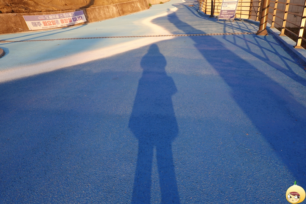 스카이밸리 옆으로 비슷한 구조물이 있는데, 둘 사이를 연결한 줄이 있다. 설마 여기도 무서운 녀석인가? 맞다. 하늘자전거라는 이름의 스카이 사이클이고, 구조물은 탑승장과 회차타워다. 전망대가 가장 무섭지 않다니, 묵호에 다시 가더라도 스카이밸리는 영원히 패스다.