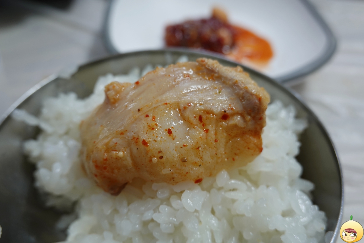 밥이 함께 나왔지만, 뚜껑을 열지 않고 국만 흡입했다. 슴슴해서 밥이 없어도 술술 잘 넘어간다. 해장국을 먹을때 해장술을 하는 이유를 알겠다. 밥보다는 녹색이 생각이 간절했지만, 새벽부터 일어나 엄청나게 돌아다녔기에 알콜을 마시면 바로 기절각이라, 서둘러 공깃밥 뚜껑을 열었다.