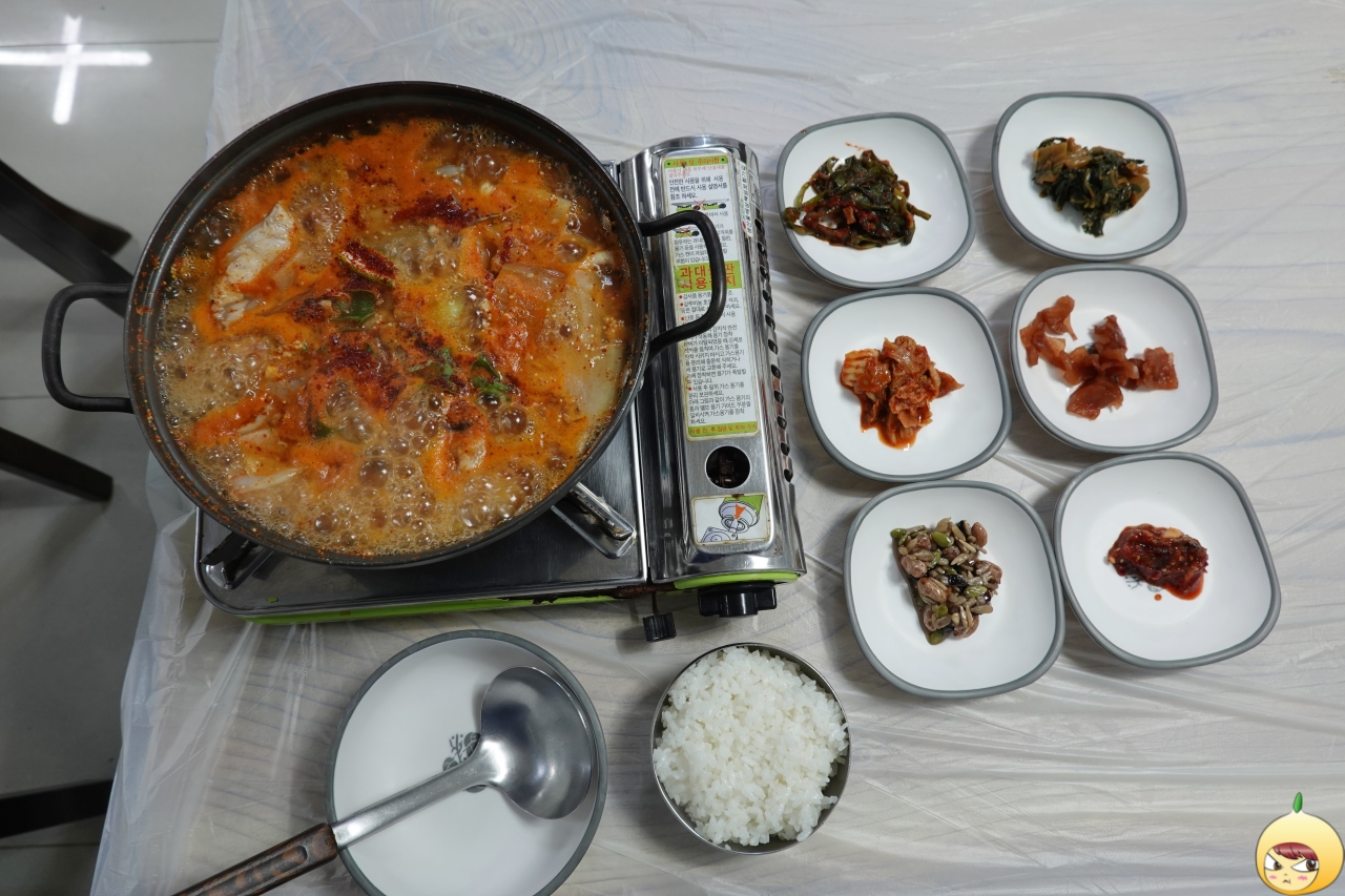 곰치국을 주문할때, 맑은탕으로 먹을 수 있냐고 물어봤다. 가능한데, 묵호는 김치를 넣어서 끓인다. 이것도 별미이니 먹어 보란다. 묵호에 왔으니 묵호식을 따라야 한다. 김치를 넣어 빨간 국물이지만, 텁텁하지 않고 국물이 맑다.