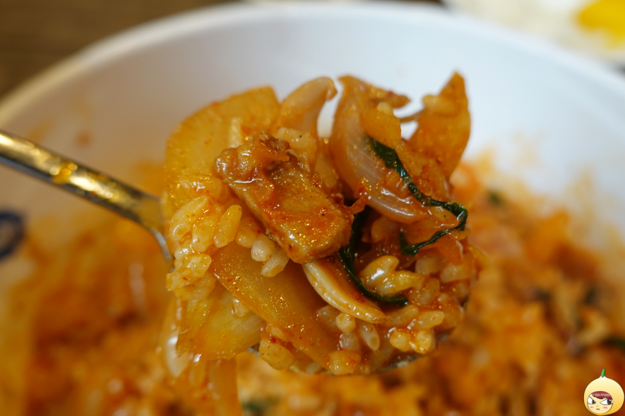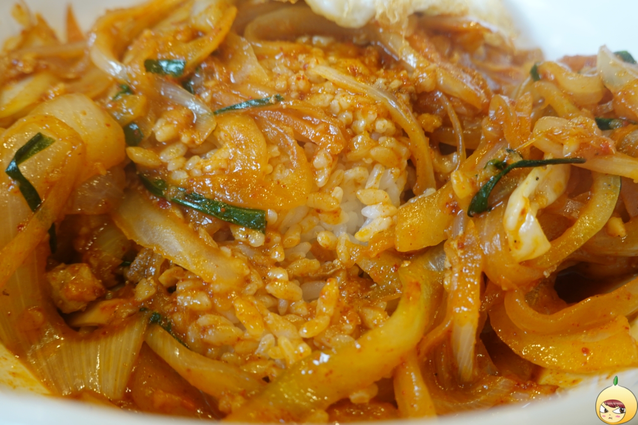 모양새는 대구식 중화비빔밥과 비슷해 보이는데, 맛은 둘다 먹지 않아서 비교를 할 수 없다. 비빔짬뽕밥은 보기와 달리 짜거나 맵지 않다. 양파를 오래 볶지 않아서 매운맛은 없고, 아삭함과 달달함은 살아있다. 흰밥이 있다는 건, 볶은밥이 아니라 비빔밥이라는 증거다.