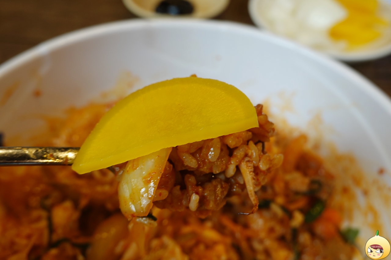 국물없는 짬뽕이라서 짬뽕국물대신 계란탕이 나왔으면 좋지 않을까 했는데 아니다. 맛이 달라서 밥을 먹고 국물을 먹어도 잘 어울린다. 중국음식에 단무지는 국룰이니 무조건 같이 먹어야 한다. 양파가 워낙 많지만, 오징어도 종종 나온다.