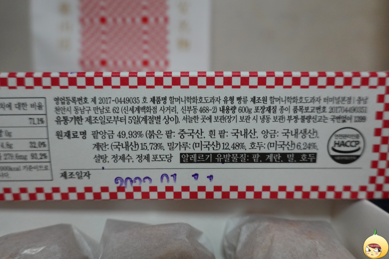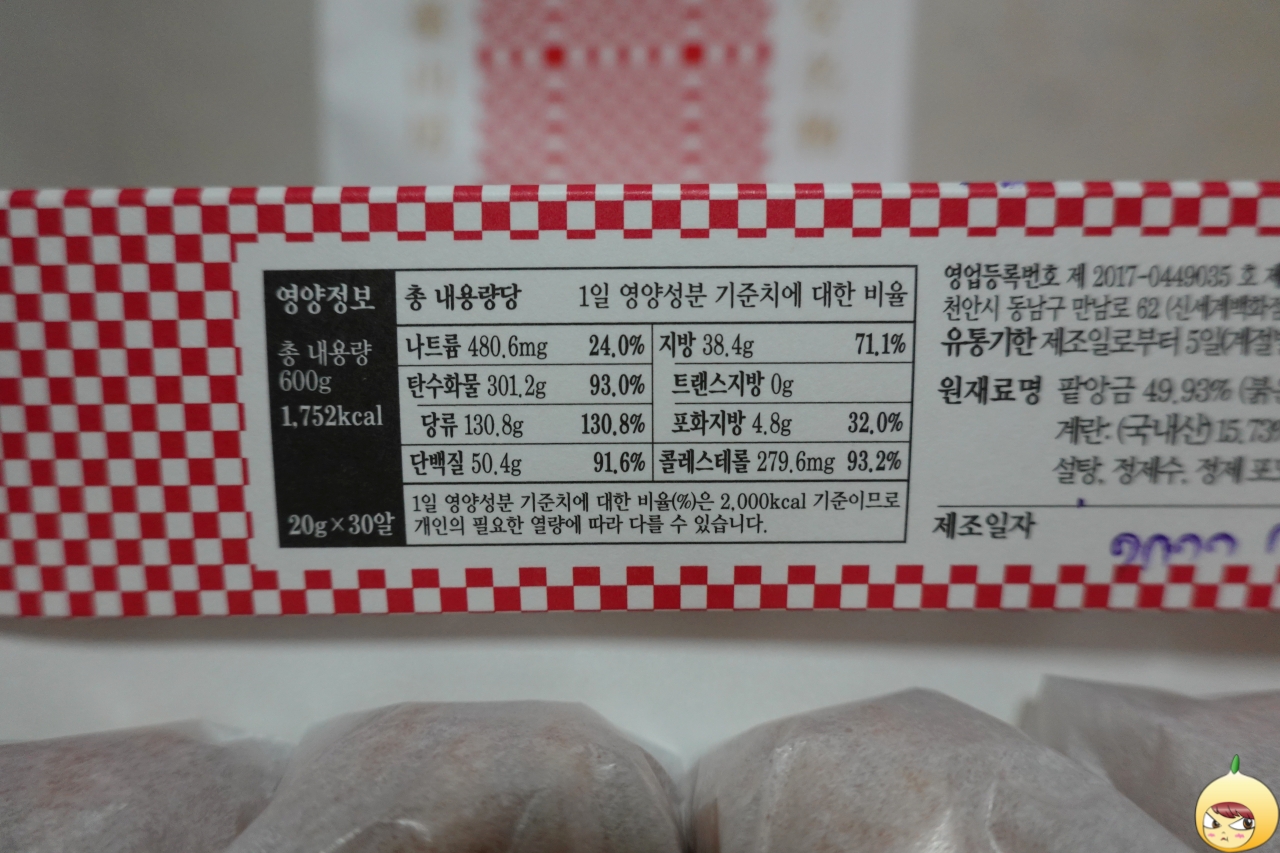 너무 순진했던 것일까? 당연히 천안 호두가 들어 있는 줄 알았는데, 원재료를 보니 미국산이다. 호두과자가 작다고 우습게(?) 보면 안되겠다. 호두과자 30알 칼로리가 1,752kcal다.