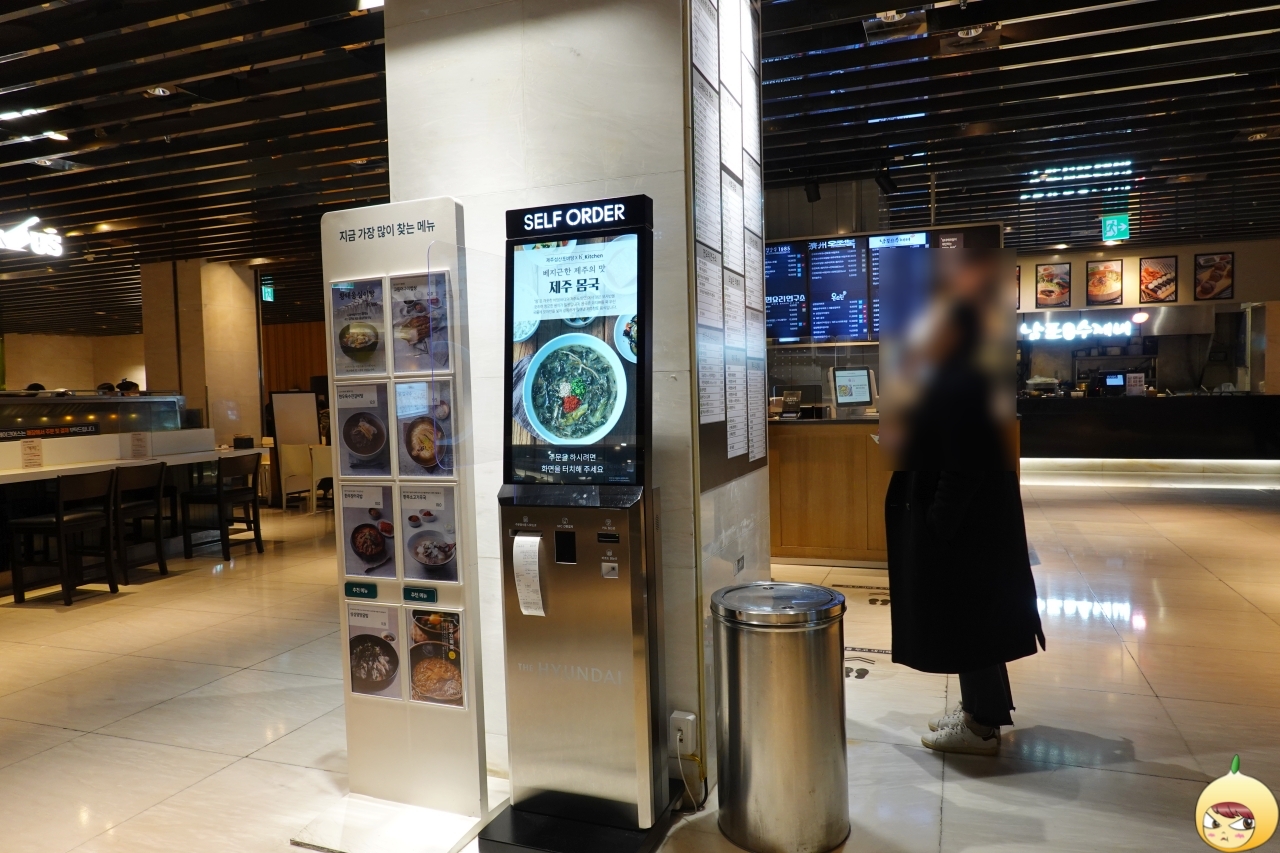 메뉴 선택 후 결제는 기계에게 맡겨도 되고, 대면으로 해도 된다. 백화점 푸드코트가 좋은 이유는 브레이크 타임도 없고, 혼밥하기에도 좋다. 더불어 코시국에 맞게 방역도 철저하니 즐겨 찾게 된다. 백화점에 들어올때 QR체크를 했는데, 푸드코트는 마스크를 벗고 음식을 먹어야 하는 곳이다 보니 또 해야 한다.