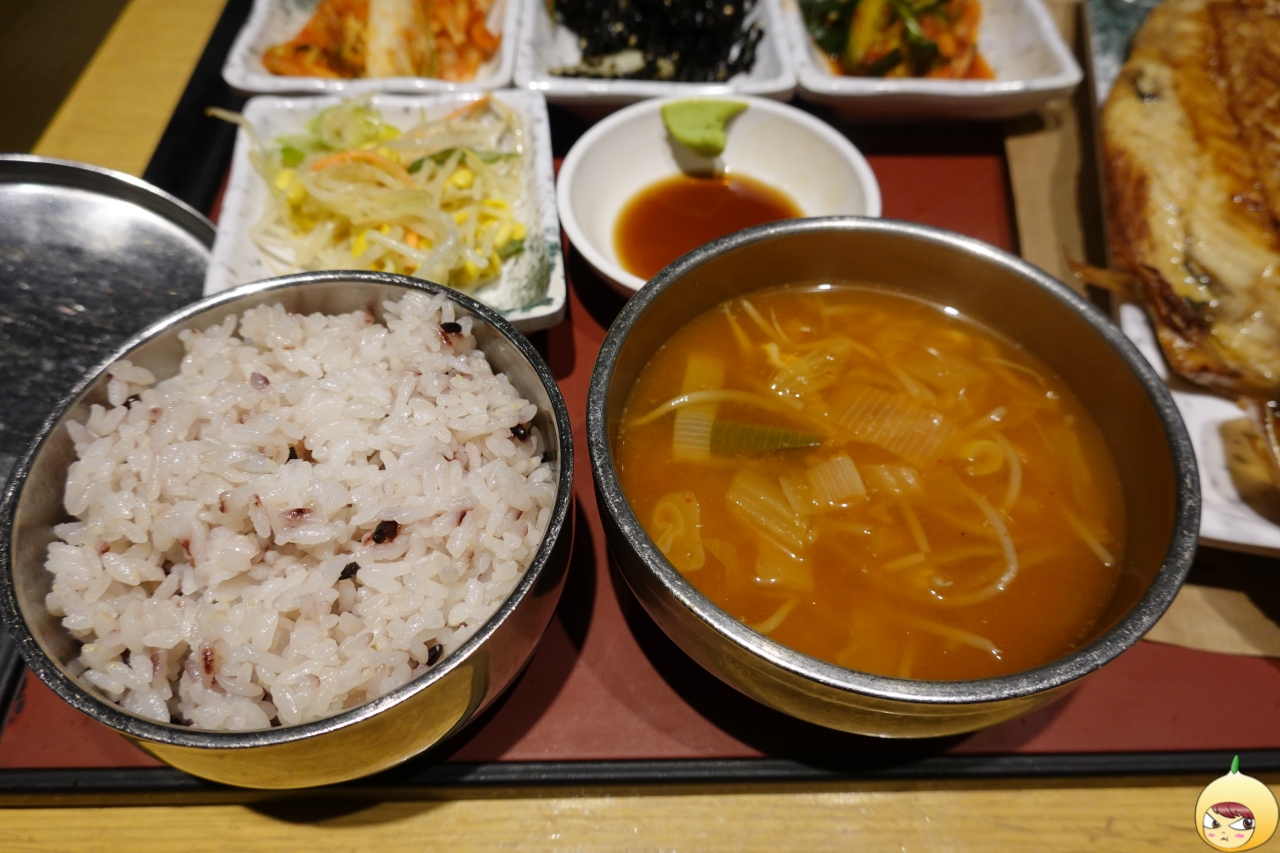 고등어구이 밥상이니, 밥이 빠지면 안된다. 밥에 국물은 필수일 수도 있고, 선택일 수도 있지만, 여기는 필수다. 고슬고슬 밥에 매운맛은 전혀 없는 시원한 김치콩나물국이다.