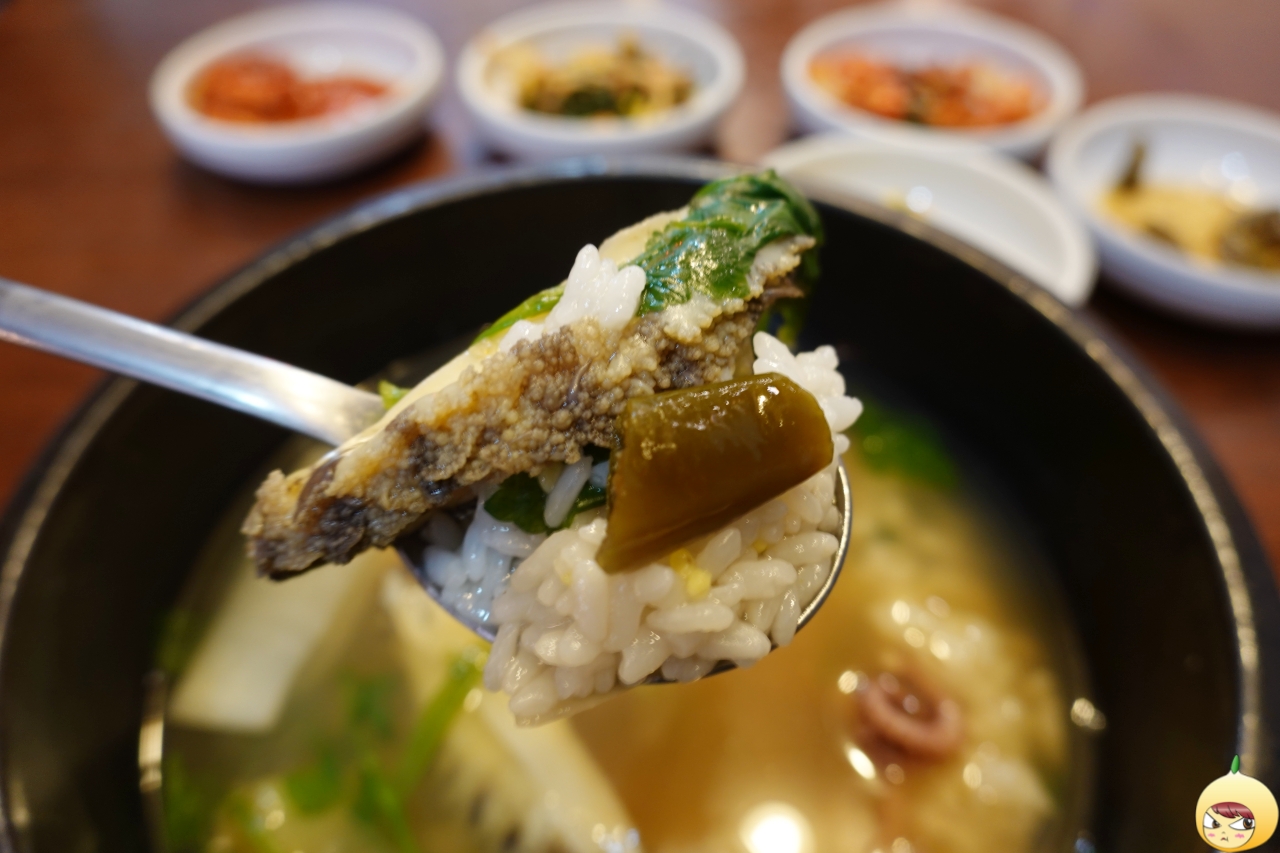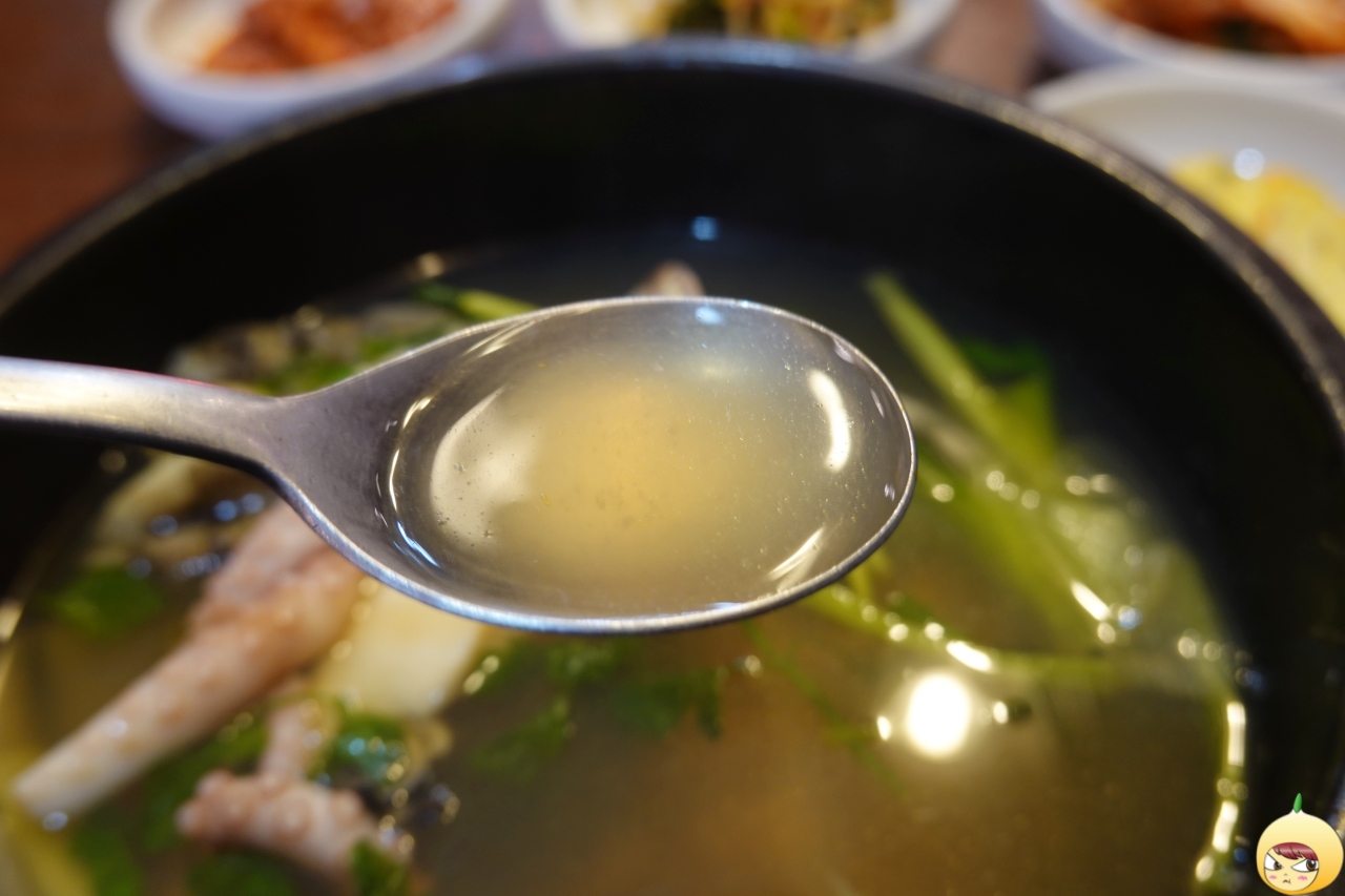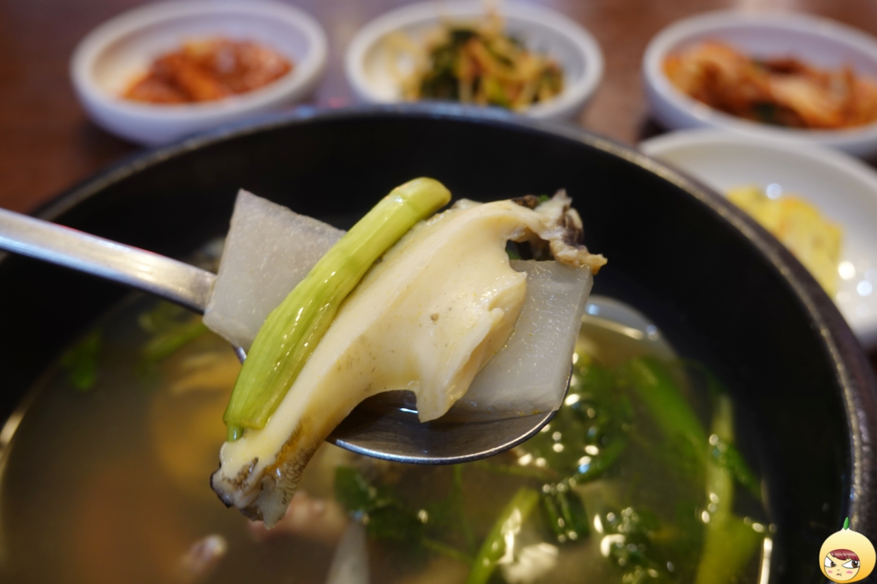 당연히 그러하겠지만, 익힘 정도가 예술이다. 질김은 일절 없고, 적당히 야들하면서 적당히 부드럽다. 여기에 미나리와 무를 더하니 멀리하고 있는 알콜을 소환하고 싶다. 전복은 회나 구이 그리고 죽으로 주로 먹었다. 통전복이 아니면, 얇게 썰려 나오기에 맛보다는 식감 위주로 먹었는데, 강공순할매집 할매탕은 전복이 통통해서 식감은 물론 맛까지 제대로다.