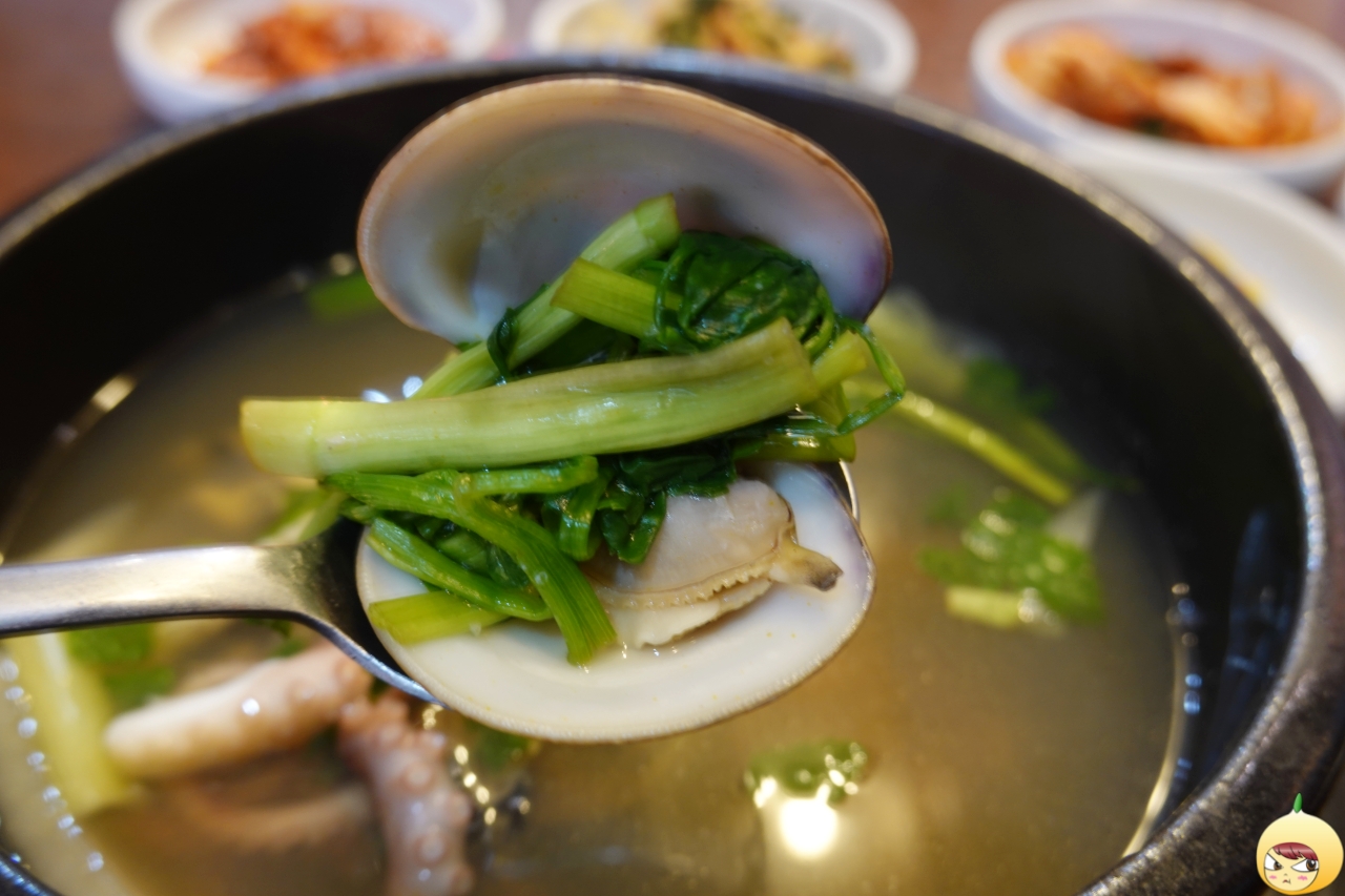 건더기에 반해서 국물은 그리 신경쓰지 않았다. 하지만 사진을 찍고 국물을 맛봤는데, 어라~ 다르다. 살짝 짠맛이 있지만, 그보다 엄청난 감칠맛이 훅하고 들어온다. 더불어 무지 뜨거운데 극강의 시원함도 있다. 전날 떡이 되도록 술을 마셨더라면, 이 맛을 더 찐하게 느낄텐데 맨정신이라서 겁나 아쉽다.