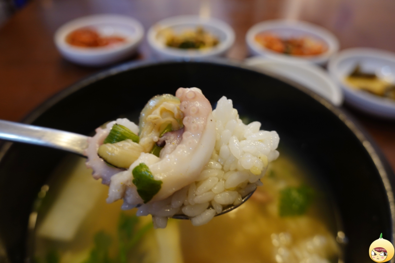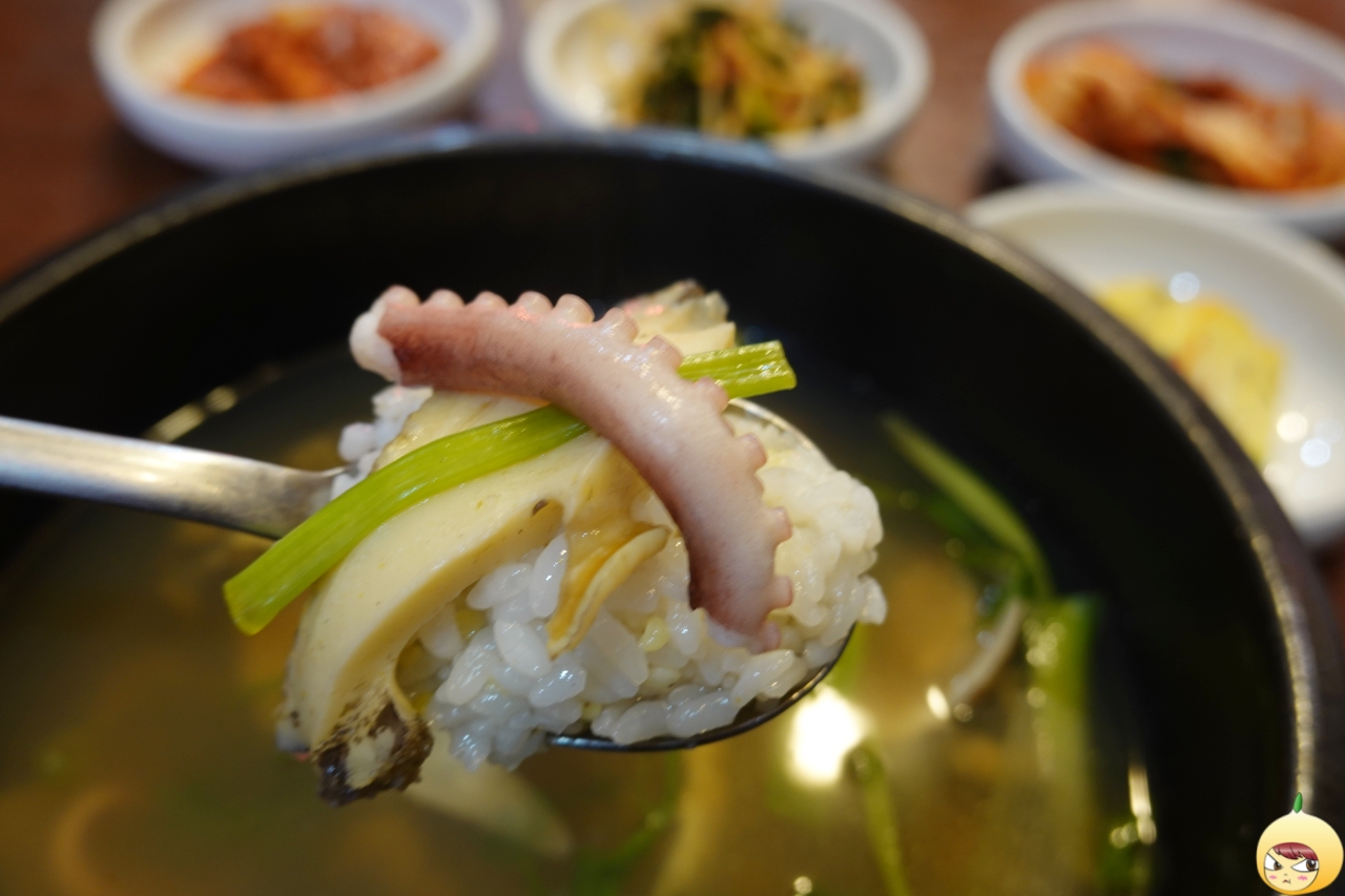 본격적으로 흡입하기 위해서는 밥을 말아야 한다. 낙지 한번, 전복 한번, 밥과 함께 먹는다. 그냥 먹을때도 좋은데, 밥을 말아서 먹어도 좋다. 밥에 반찬을 올려서 먹는 걸 좋아하지만, 할매탕은 따로 먹어야 한다. 왜냐하면 이렇게 좋은 국물은 그대로 유지해야 하니깐. 여전히 방송에 소개된 곳을 그닥 좋아하지 않지만, 언제나 예외는 있다.