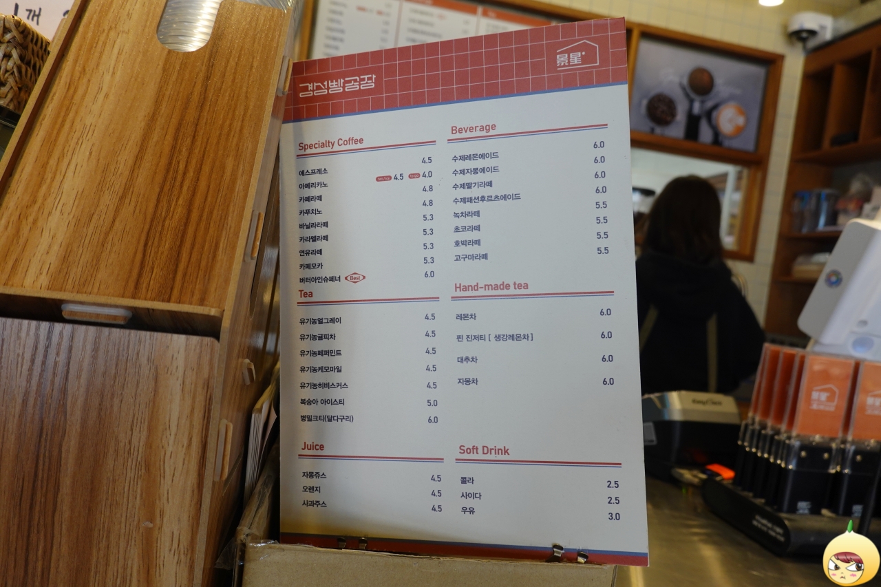 카페를 같이 운영하는 빵집이니, 음료 주문은 당연이다. 오후 2시가 넘으면 커피를 마시면 안되는데, 이날따라 유독 커피가 끌렸다. 카페인에 약한 1인이라 잠을 포기해야 하지만, 이날 선택한 빵에는 커피가 필수다. 에스프레소는 맛이 쓰니깐, 여기에 우유를 더한 카페라떼(4,800원)를 주문했다.