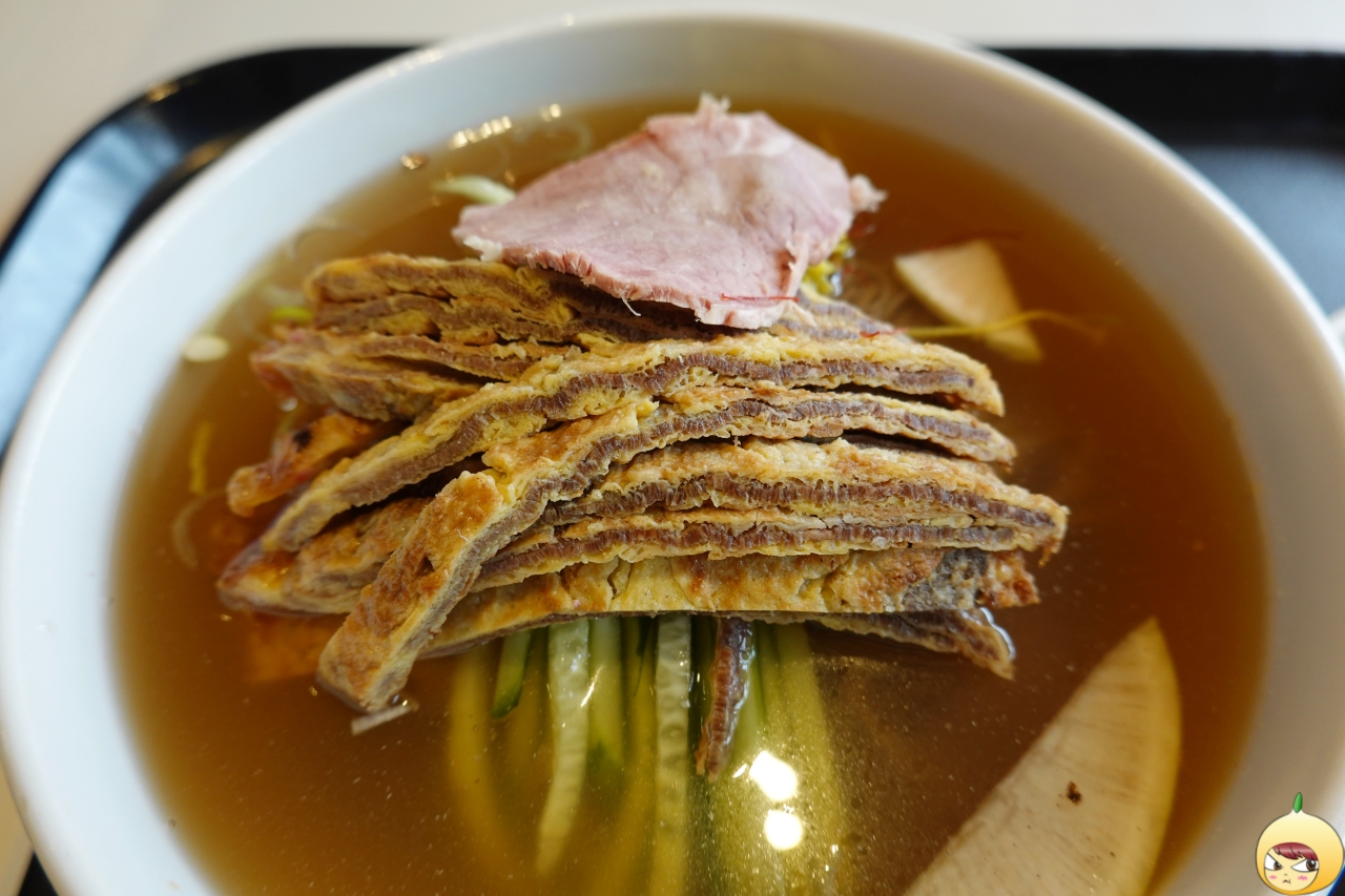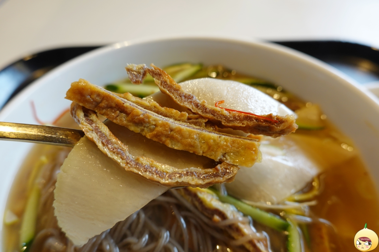 본격적으로 냉면을 먹기 전, 육전부터 먹는다. 국물에 스며들기 전에 어떤 맛인지 알아야 하니깐. 냉면 고명으로 나온 수육은 거의 먹지 않지만, 육전은 예외다. 물(육수)에 빠지기 전에 계란옷을 입고 기름샤워를 했기 때문일까? 육향은 별로, 고소한 향만 가득이다. 물에 빠진 후에도 고소한 맛은 계속 이어진다.