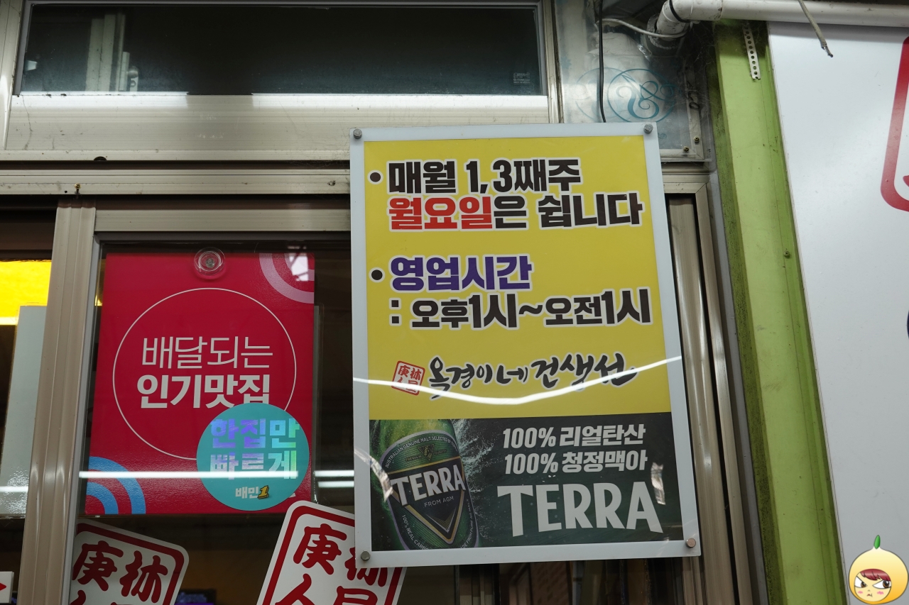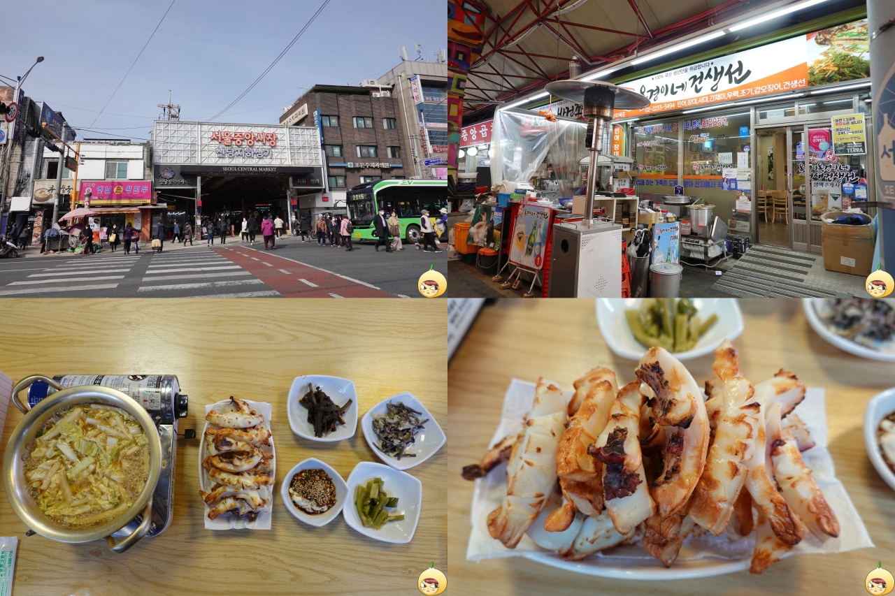 무언가를 질겅질겅 씹고 싶었다. 껌은 턱이 아프고 허탈해서 싫고, 뭔가 가치있는 씹을거리가 필요했다. 이럴때 어디로 가야 할까? 생각에 생각을 하다보니, 그 집이 떠올랐다. 신당동으로 가는 버스를 타고, 서울중앙시장에 내린다. 시장 안으로 들어오니, 저만치 옥경이네건생선이 보인다.