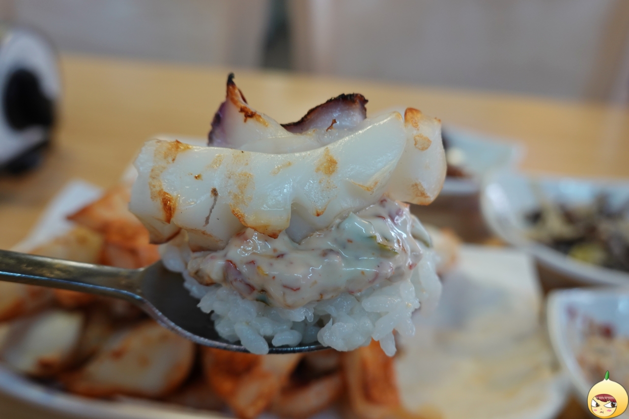 그냥 먹어도 담백하니 좋지만, 갑오징어구이의 화룡점정은 마약소스라고 부르고 싶은 청양마요네즈간장소스다. 청양고추가 마요네즈의 느끼함을 잡고, 여기에 간장을 더하니 짭조름한 맛이 살아난다. 과하게 짜지 않으니 소스를 듬뿍 찍어서 먹어야 한다. 매콤함이 입안을 스치는데 이게 또 매력이다.