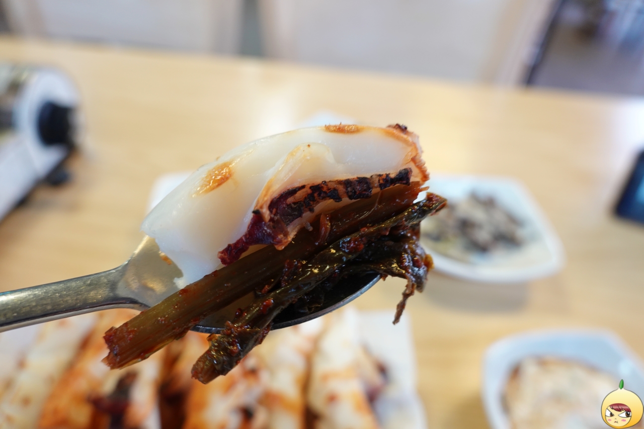 굳이 반찬을 더할 필요는 없는데, 곰삭은 듯 푹익은 갓김치와 갑오징어는 은근 궁합이 맞다. 고추의 매운맛과는 또다른 갓김치의 알싸함이 갑오징어와 잘 어울리기 때문이다.
