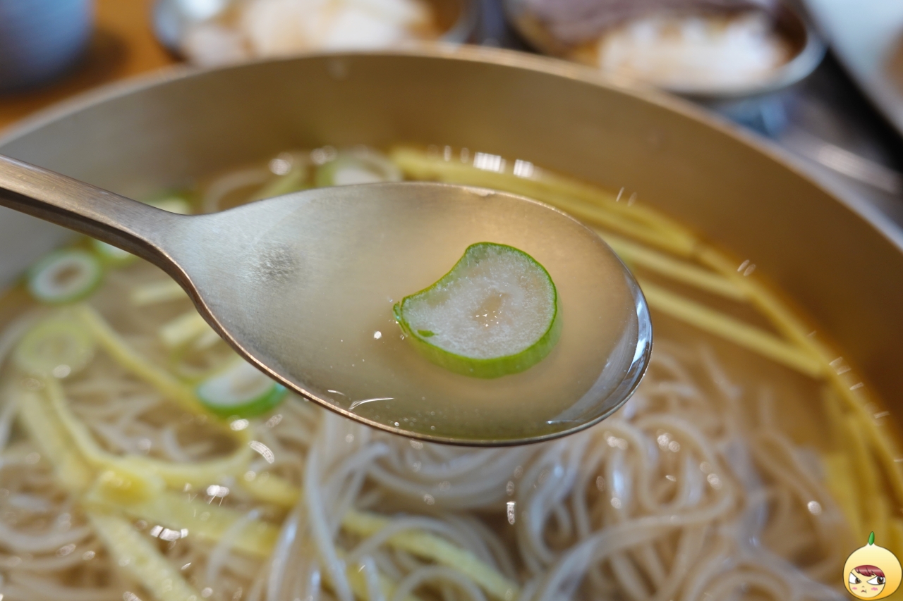 평양냉면을 미치도록 좋아하는 1인은 아니지만, 힘흥이나 진주 그리고 백령도 냉면에 비해서는 평양냉면을 더 좋아하는 편이다. 이유는 깔끔하고 담백한 음식을 좋아하기 때문이다. 육수라서 기름이 둥둥 떠있어야 하는데, 맹물이라고 해도 될 정도로 깔끔하다.