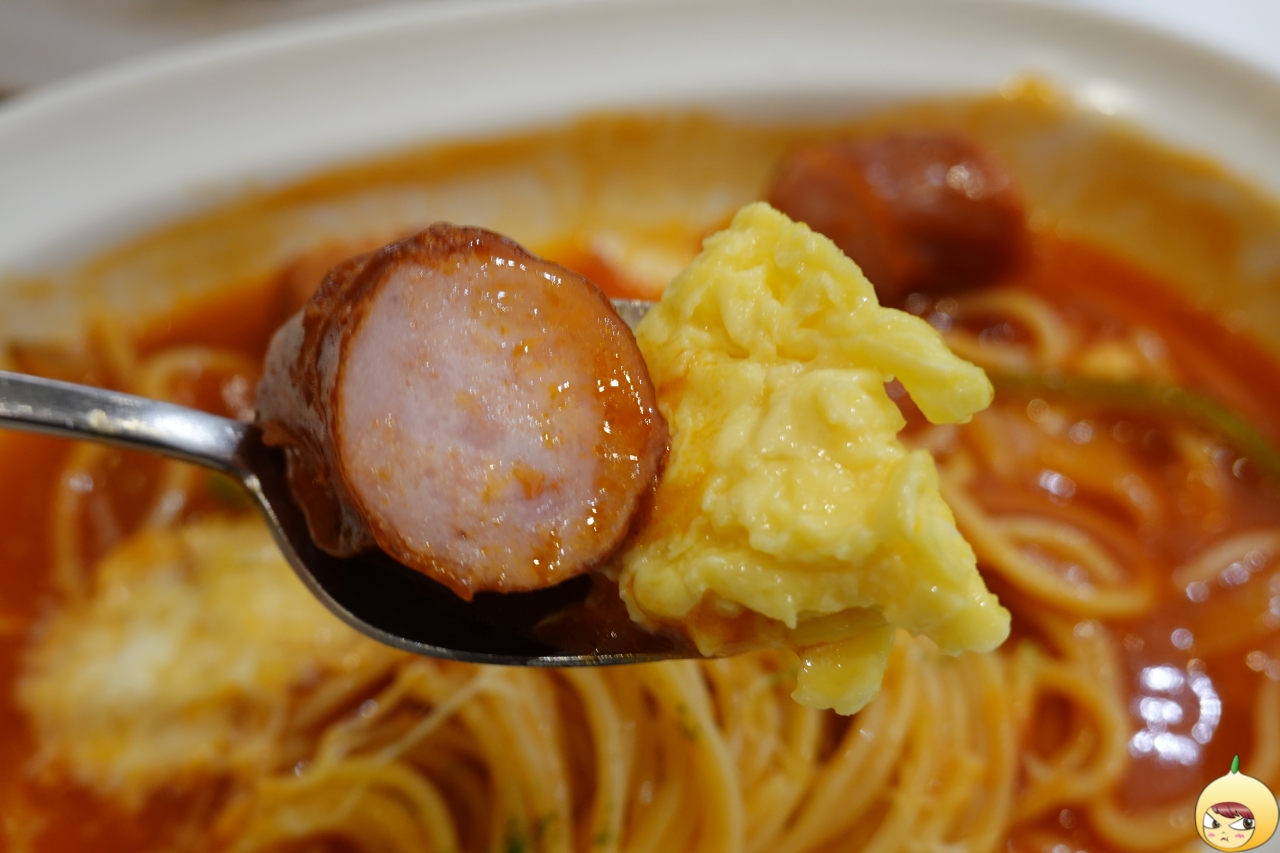케첩이 무지무지 좋아해서 모든 음식에 케첩을 뿌려서 먹었던 적이 있다. 그때 그 시절로 돌아간 느낌이랄까? 면에 소시지, 치즈 그리고 계란까지 모두다 나폴리탄 소스에 풍덩이다.