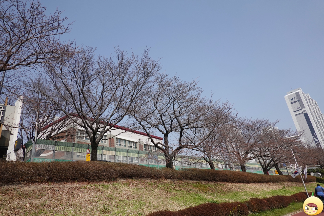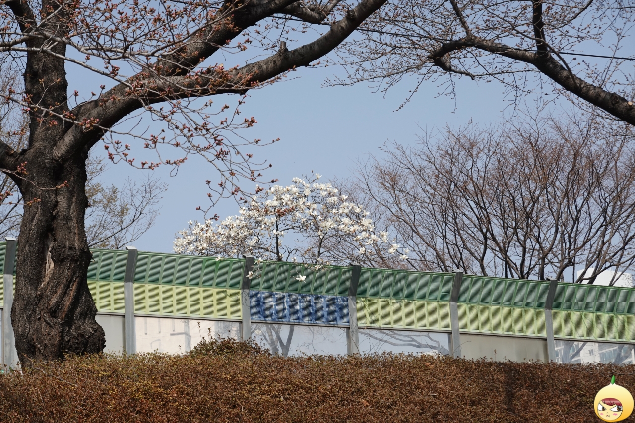 그러나 설렘도 잠시뿐, 길을 따라 벚나무는 쫙 있는데 벚꽃은 없... 아니 안 보인다. 분명 오늘(3월 24일)이 개화라 그랬고, 만개까지는 아니더라도 그래도 꽃망울을 터뜨린 아이들이 있을 거라 예상했는데 없어도 너무 없다. 봄바람에 따라 흩날리는 벚꽃은 없고, 휑한 벚나무만 가득이다. 꽃샘추위로 인해 예상을 하긴 했으나, 이정도일 줄은 몰랐다.