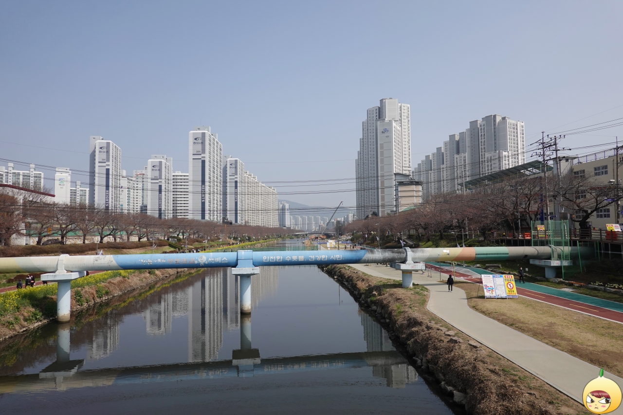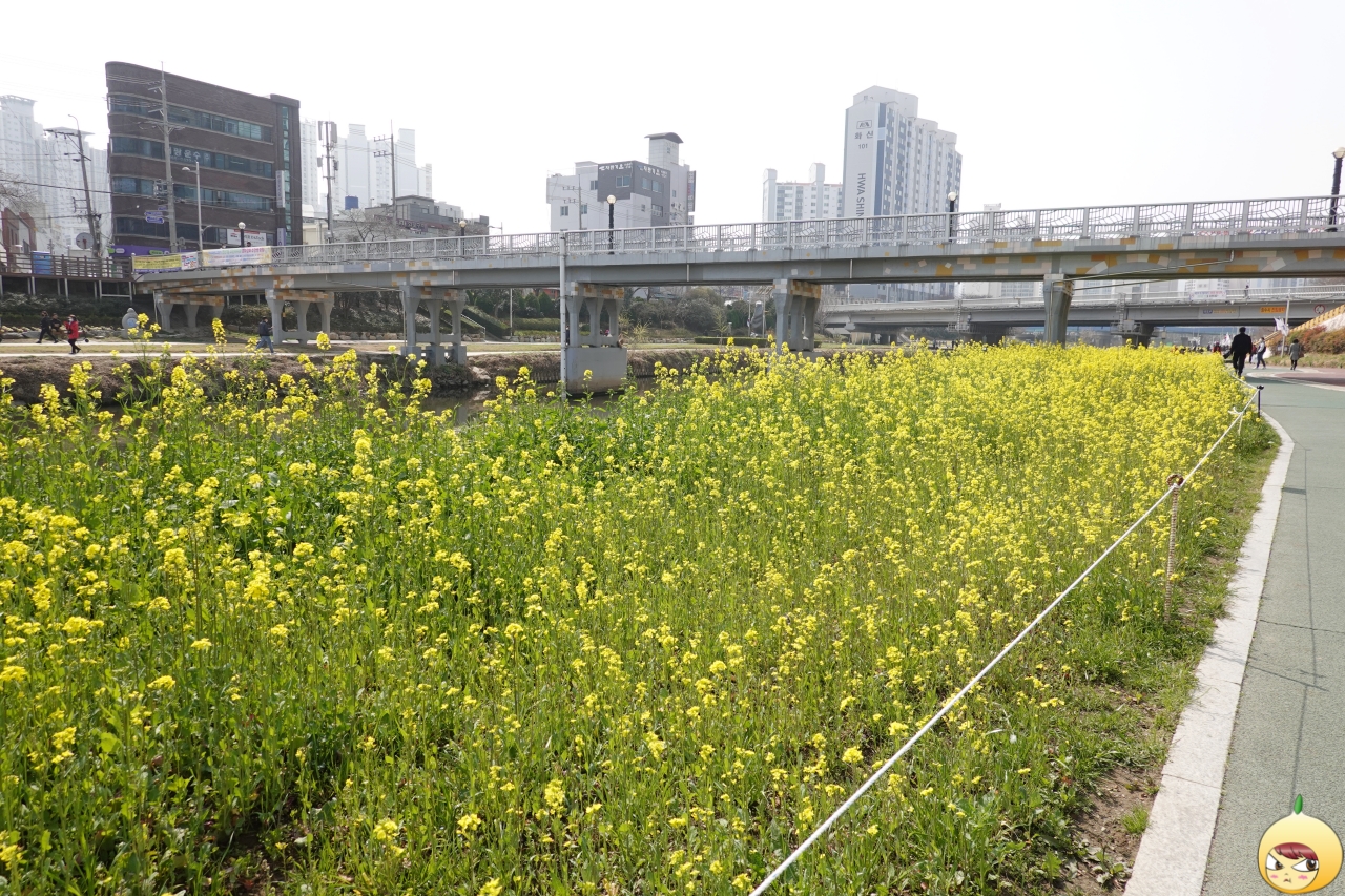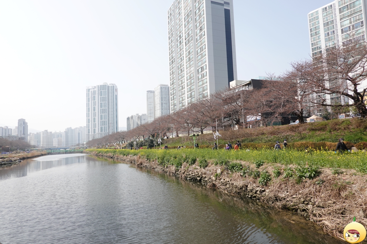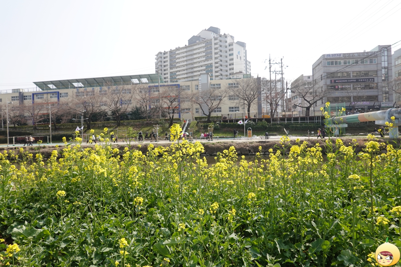 2022년 부산 벚꽃 개화시기는 3월 24일이라고 한다. 때마침 부산에 갈 일이 생겼다. 천재일우의 기회를 놓칠 내가 아니다. 개화 첫날이라서 만개는 아니더라도 그래도 어느정도는 활짝 핀 벚꽃을 만날 줄 알았다. 그런데 벚꽃 대신 유채꽃을 만나고 왔다. 부산 온천천에 있는 벚꽃길이다.