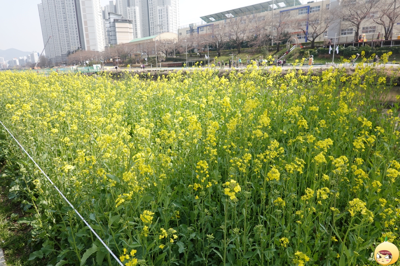 유채꽃하면 제주도인데, 부산 온천천에도 유채꽃이 만발이다. 벚꽃도 유채도 서울에서는 4월에 볼 수 있는데, 3월에 보다니 기분이 아닐 좋을 수 없다. 물론 벚꽃에 대한 아쉬움은 여전히 남아 있다.