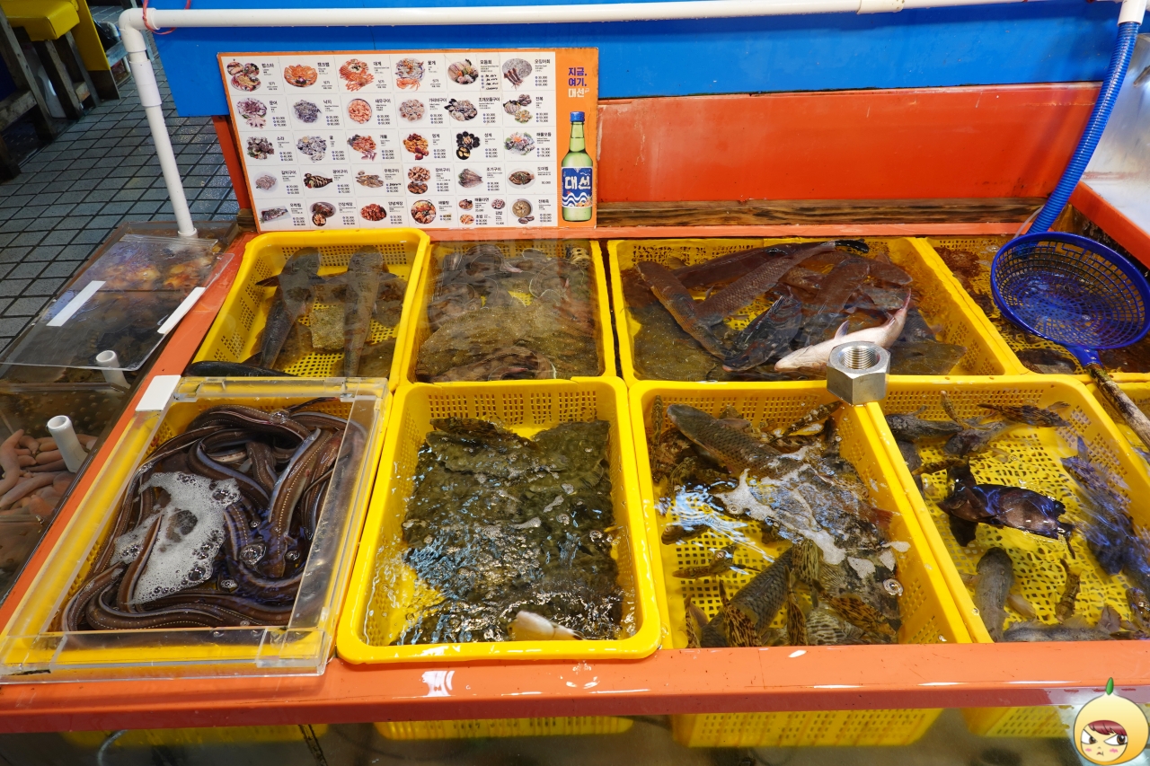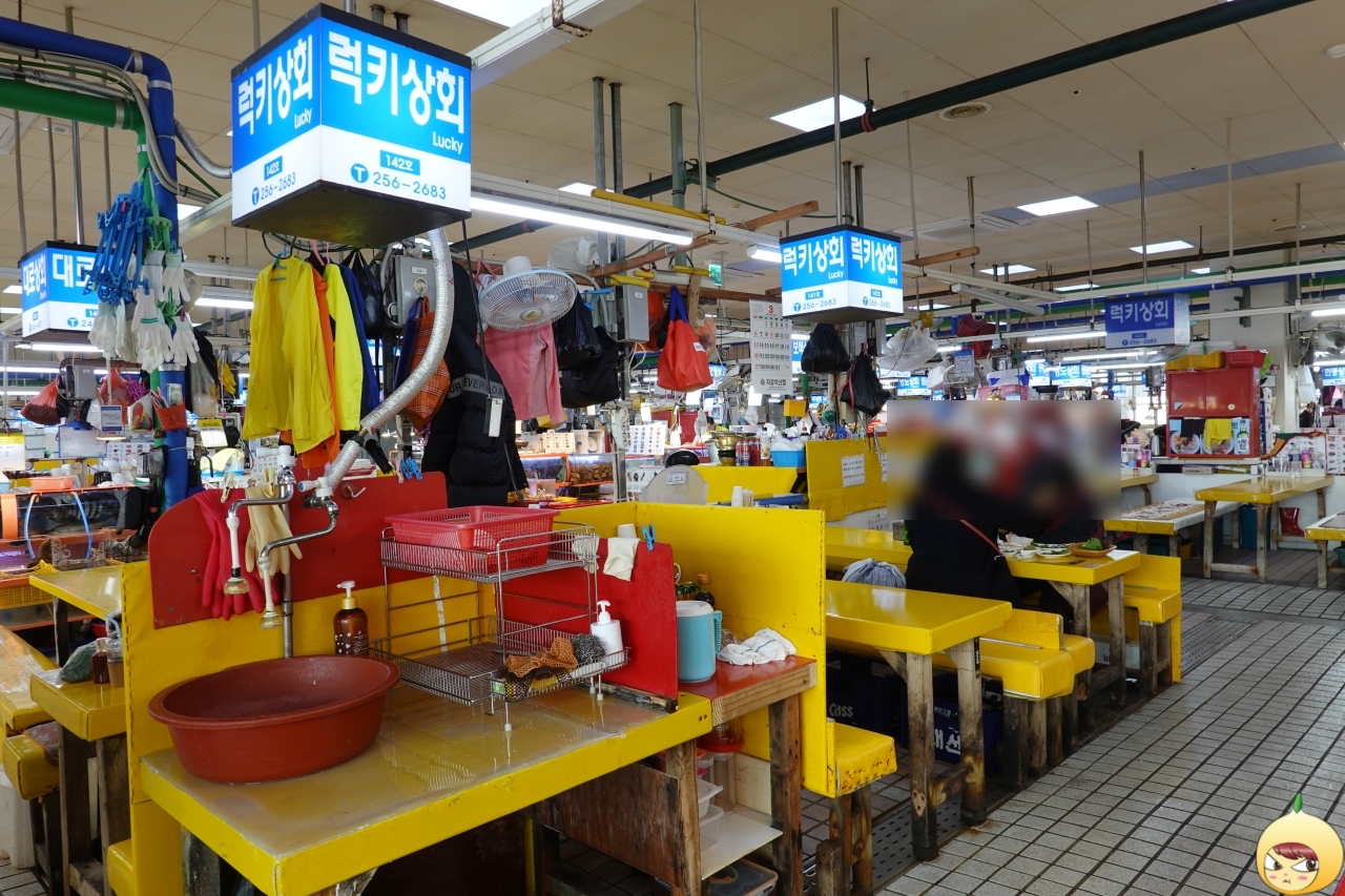 수산시장이니 럭키상회에서 회를 뜨고, 식사는 다른(2층) 곳에서 하는 줄 알았다. 그런데 주인장 왈, 그냥 여기서 먹어도 된다. 다른 곳에 가면 세팅비를 내야 하는데, 횟값만 내고 먹으면 된단다. 왜 테이블이 있을까? 내심 궁금했는데 이제야 알겠다. 굳이 다른 곳으로 이동하지 않고, 냉큼 자리에 가서 앉았다.