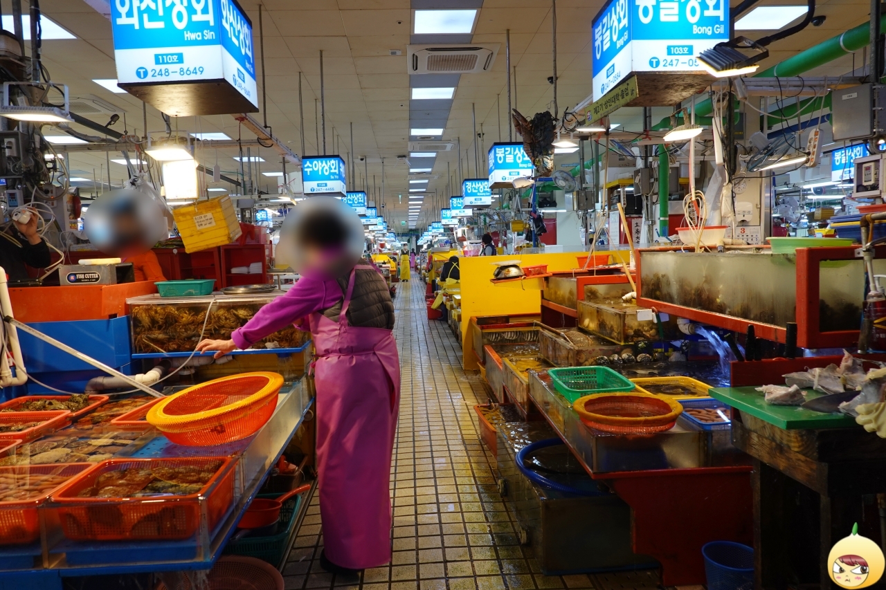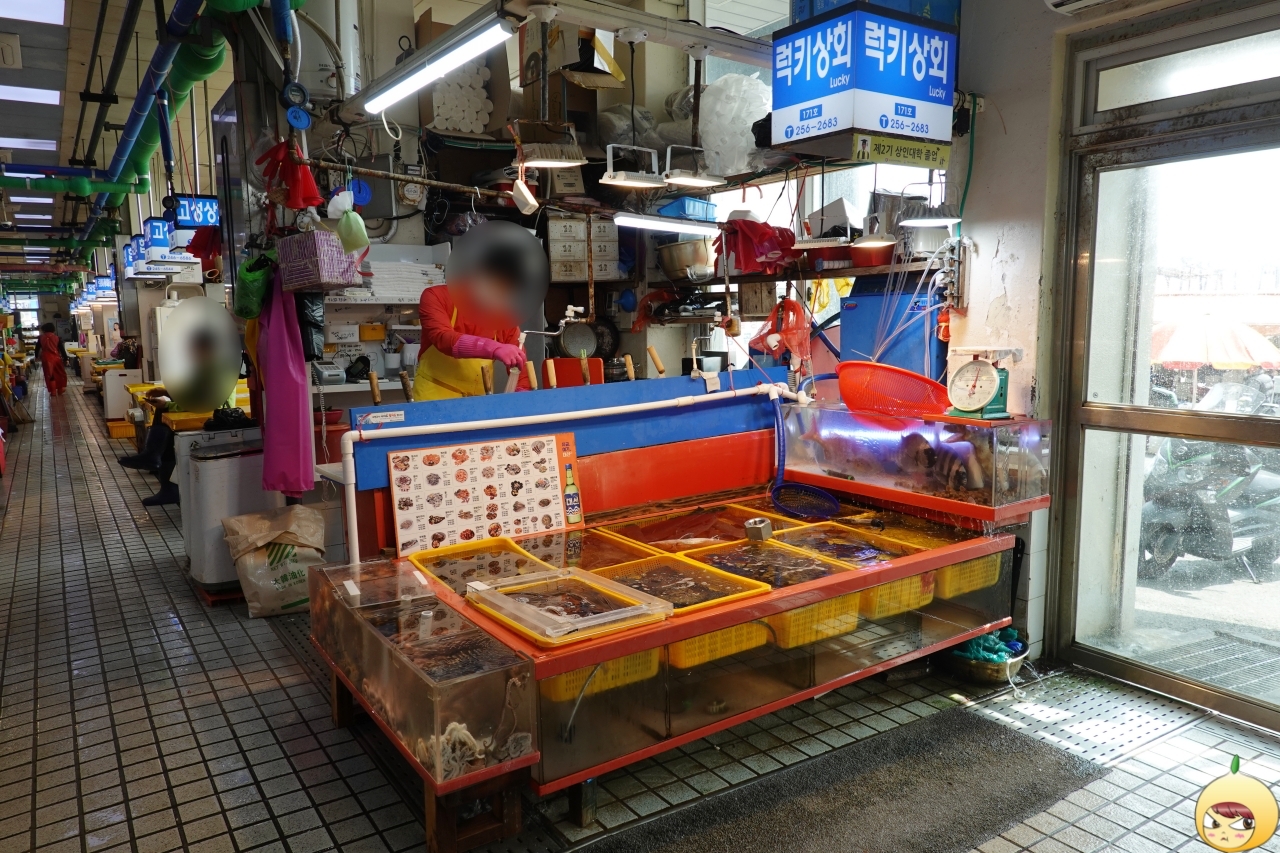 자갈치시장은 외관만 보고, 그 옆에 있는 신동아시장으로 왔다. 호객행위가 심하다고 하기에, 도착하기 전에 현지인 친구(코로나 밀접접촉자가 되어 자가격리 중)에게 도움을 요청했다. "어디 가서 먹으면 될까?" "신동아시장에 있는 럭키상회로 가라."