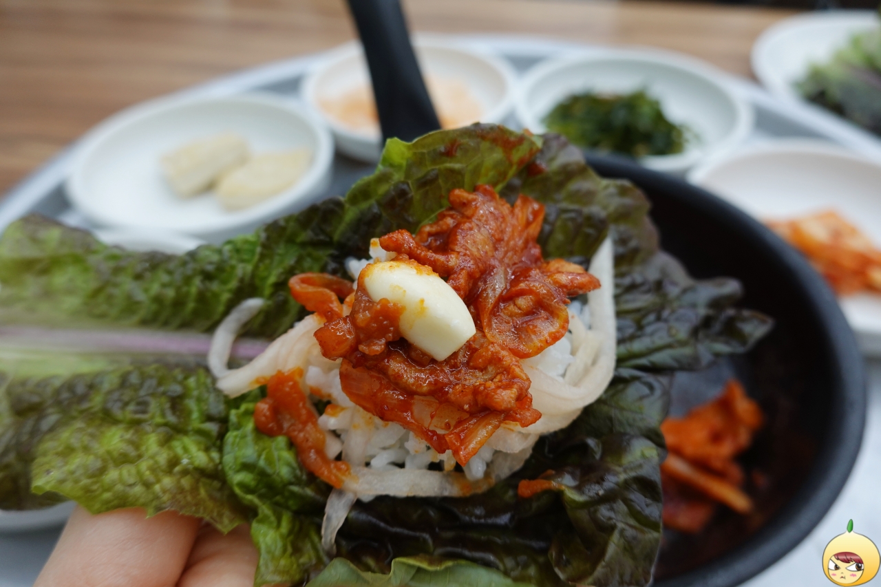 고기는 거의 다 먹었는데 양념과 밥이 남았다면 당신의 선택은? 테이블에 가스버너가 있다면 볶음밥이지만, 없을때는 비빔밥이다. 부족한 상추를 리필한 후, 또 쌈이다. 이때도 마늘은 놓치지 않는다.