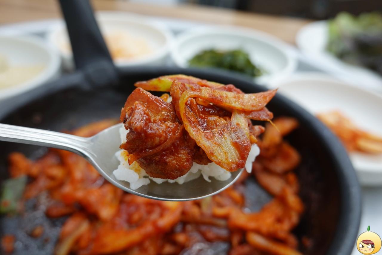 첫느낌은 '많이 매우면 어떡하지' 그럼 숨고하지가 아니라, 밥을 많이 먹어야겠구나 했다. 따로 검색을 하지 않았기에, 서울 성북동처럼 간장 불백인 줄 알았는데, 빨간맛이라서 살짝 당황했다. 근데 보기와 달리 매운맛도 강하지 않고, 불맛도 세지 않고 은은했다.