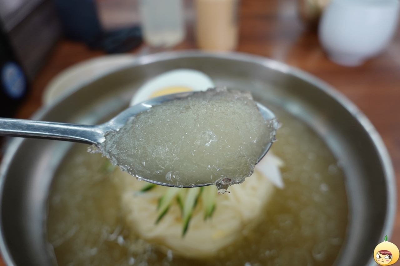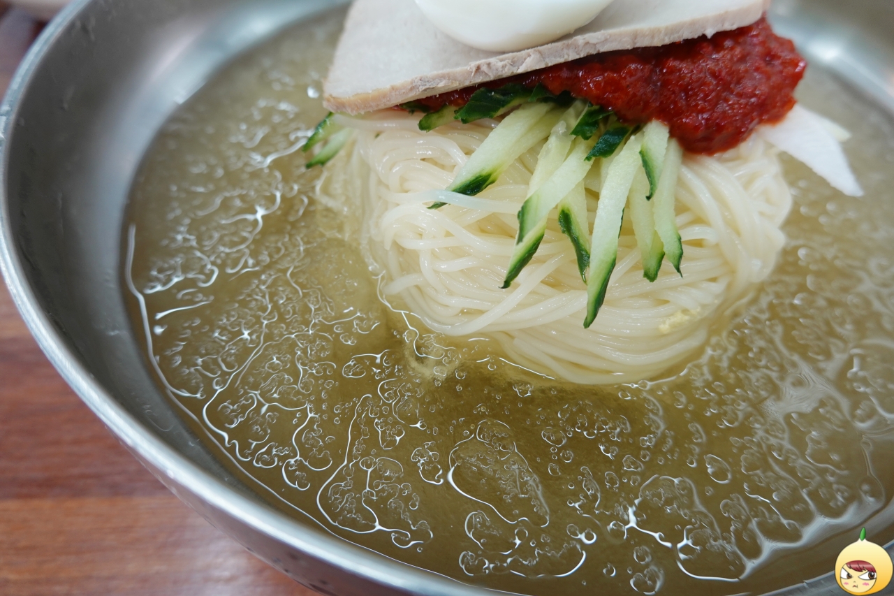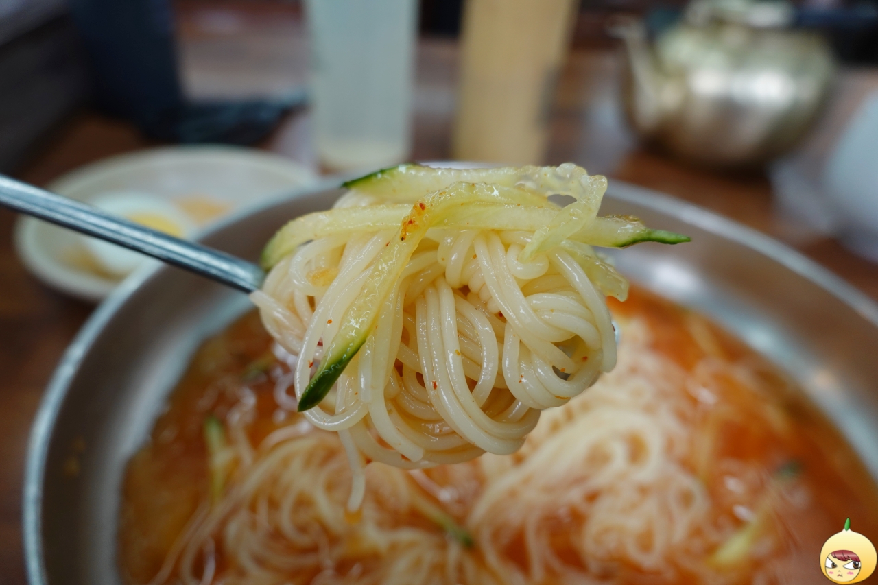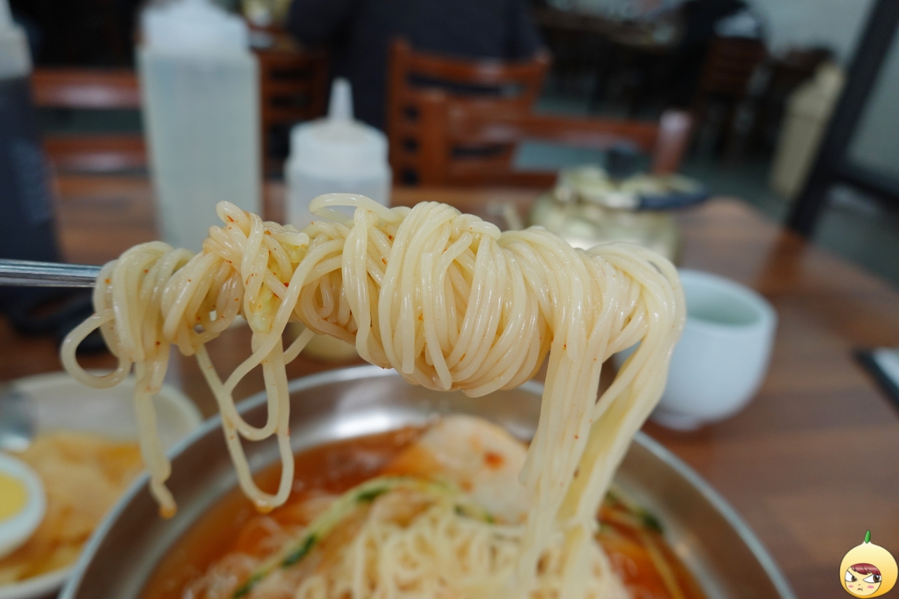 육수와 달리 면발은 밀가루면답게 쫄깃함이 엄청나다. 지금까지 먹었던 잔치국수, 비빔국수 그리고 칼국수보다 더 탄력은 단연코 으뜸이다. 함흥냉면의 질긴 면발과는 다르지만, 쫄깃함 때문에 밀면을 먹는 거라면 완전 공감이다.