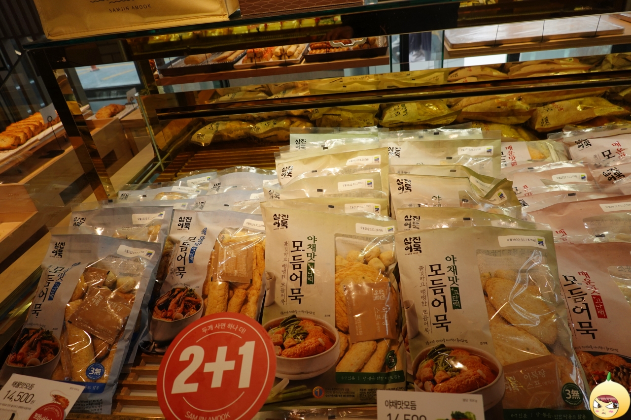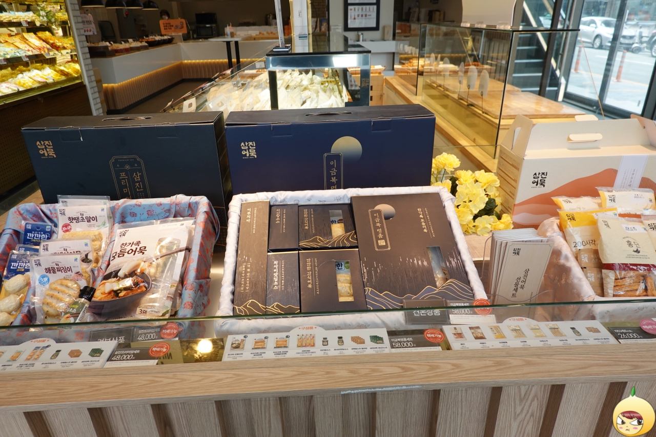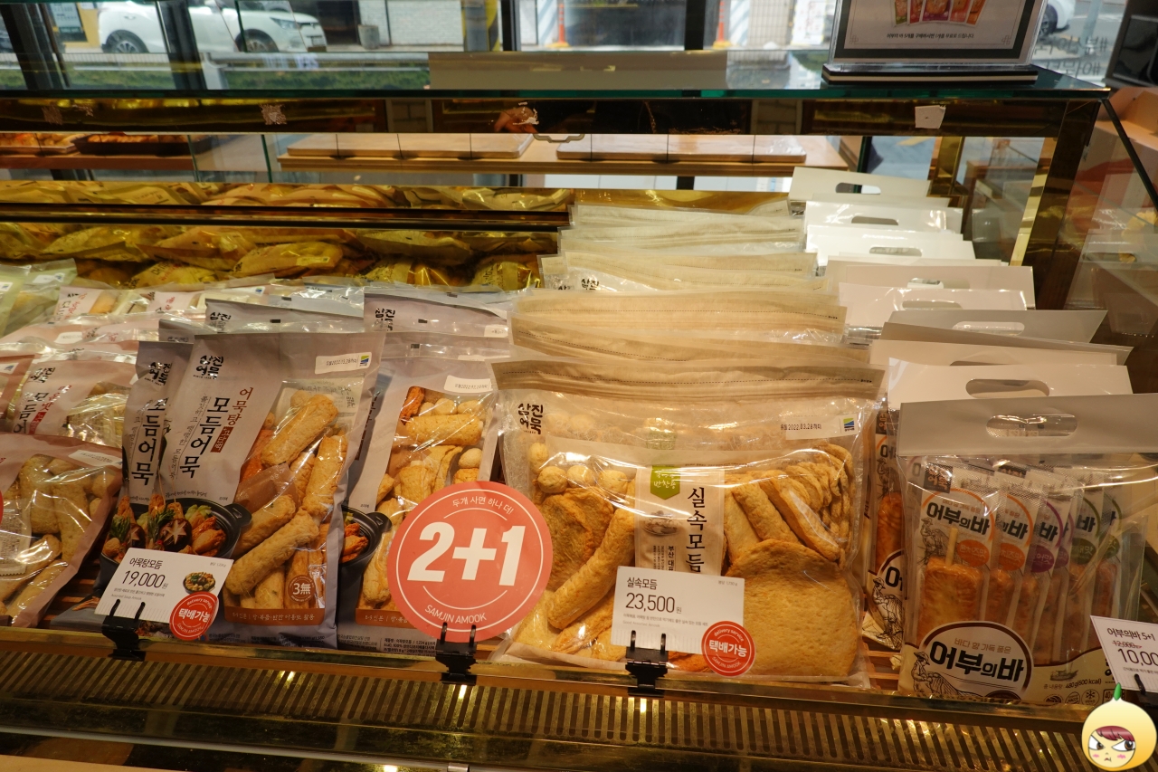 본점에 비해 매장 규모는 작고, 역 근처에 있다보니, 포장용으로 되어 있는 어묵이 많이 보인다. 모듬어묵은 해물맛, 야채맛 그리고 매운맛으로 나눠져 있고, 실속모듬으로 양이 디따 많은 어묵도 있다. 하나 사는데, 2개를 사면 하나를 더 준단다. 솔깃했지만, 3개를 들어보니 엄청 무겁다. 캐리어에 넣으면 되지만, 끌고 다닐 생각을 하니 아찔하다.