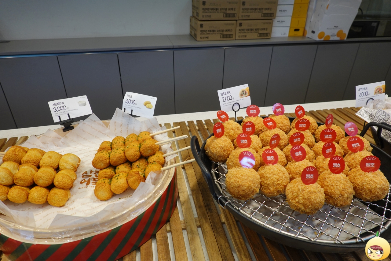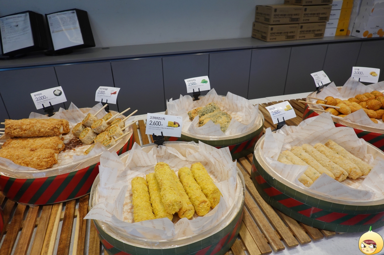 크림치즈볼과 감자볼에 이어 땡초, 새우, 치즈, 고구마 등 고로케까지 깐깐한 핫델리 코너에는 먹고 싶은 어묵이 잔뜩 있다. 포장용은 집에 가져가고, 고로케랑 고추튀김 그리고 크림치즈볼은 지금 이순간 먹으려고 했다.
