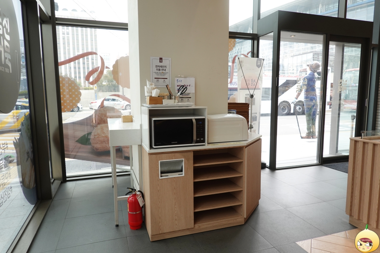 영도본점처럼 먹는 곳이 따로 있지 않아도, 테이블과 의자는 준비되어 있을 줄 알았다. 그런데 전자레인지 옆으로 보이는 곳에서 서서 먹어야 한단다. 처량해 보인달까? 급 먹고 싶은 맘이 사라졌다.