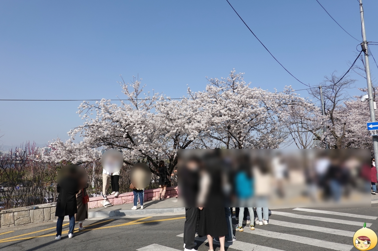 다른 곳에 비해 벚나무가 낮아서일까? 따로 포토존이라는 표시가 없는데, 줄이 어마어마하다. 본인의 차례가 올 때까지 사람들은 짜증없이 기다린다. 둘이 왔으면 동참을 했겠지만, 혼자라서 스쳐 지나간다.