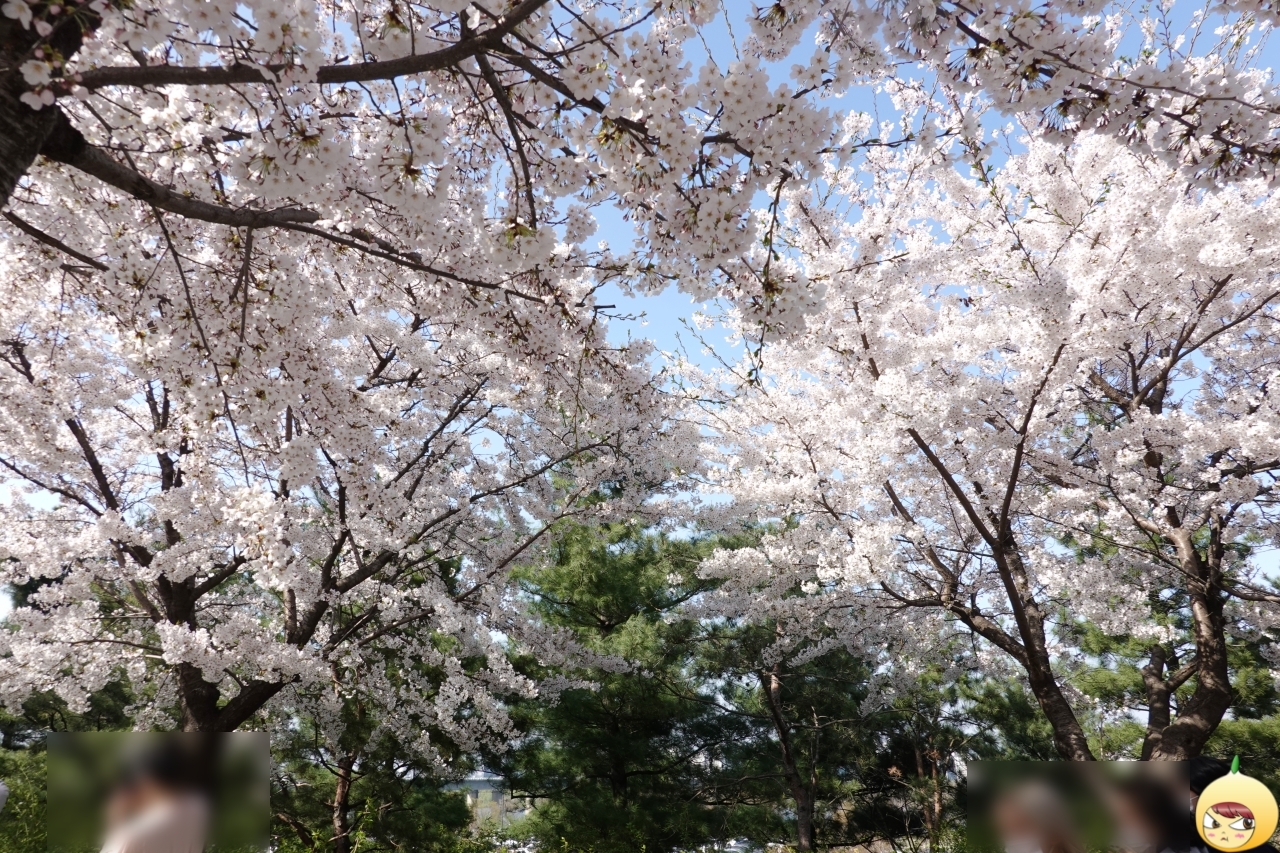 사람이 많다 보니, 시선은 자꾸 하늘을 향한다. 그래야만 후보정을 덜해도 되니깐. 미세먼지는 봄 불청객인데, 이번 벚꽃시즌은 미세먼지 없이 내내 파란하늘이었다.