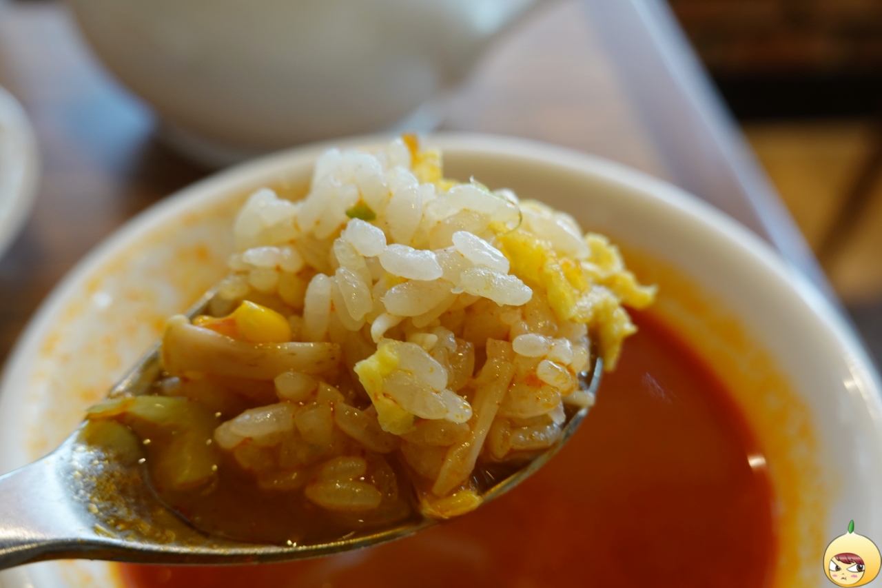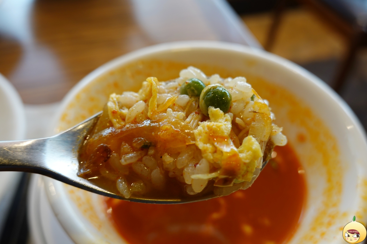 볶음밥에 짜장소스는 별로이지만, 짬뽕국물은 꽤 괜찮다. 혹시 몰라서 처음에는 적셔 먹었다. 양념이 강한 짬뽕국물이니 볶음밥이 기죽지 않을까 싶었는데, 괜한 걱정을 했다. 물론 밥만 먹을때에 비해서는 고소함은 덜하지만, 둘의 조화가 은근 괜찮다.