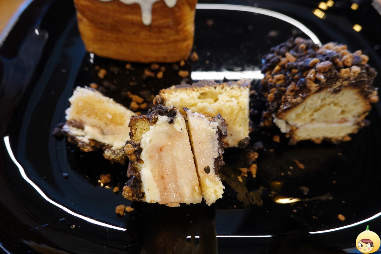 초코큐브(4,000원)는 겉모습만 봤을때 크루아상의 네모버전인가 했다. 바삭한 겉과 달리 속은 촉촉하겠지 했는데, 이런 예상치 못한 초코크림이 들어있다. 겉에 묻어있는 초코가루만으로도 초코는 충분한데, 초코크림까지 과하다 싶다. 크림은 흘러내리고, 초코가루는 떨어지고 총체적난국(?)이다. 얌전하게 먹을 수 없는 빵으로 인정, 허나 당충전은 확실히 했다.