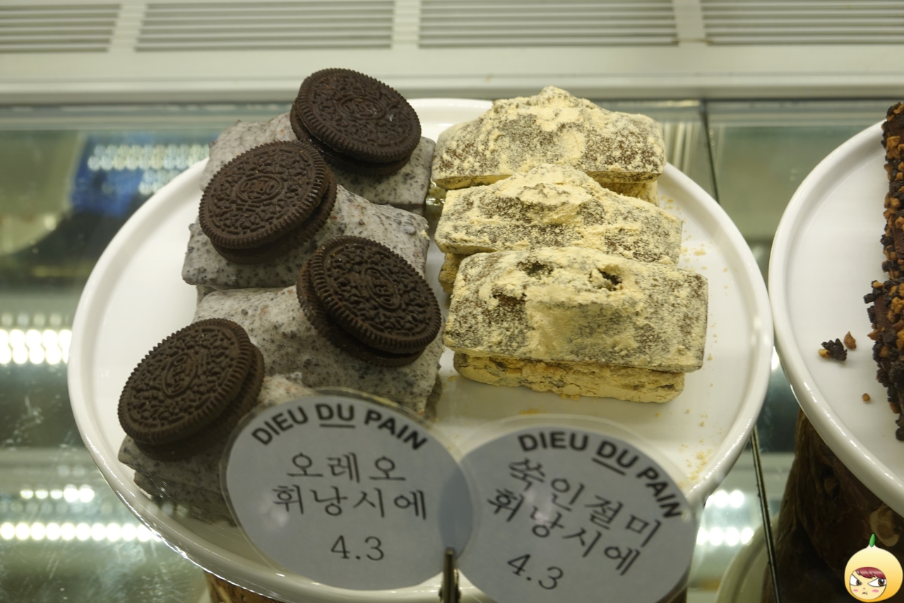 듀드팡 1층은 빵집, 2층은 카페였다. 카페는 그때나 지금이나 변함이 없는데, 1층에 있던 빵이 2층으로 올라왔다. 예전에 비해 빵 종류는 많이 줄어든 듯 하지만, 좋아하는 생크림단팥빵과 맘모스빵은 여전히 있을 거라고 생각했다.