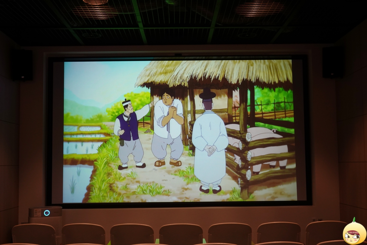 김유정이야기집에는 봄봄과 동백꽃을 애니메이션으로 감상할 수 있는 영상실이 있다. 자막은 영어지만, 더빙이라서 안심해도 된다. 동백꽃까지 보면 좋은데, 시간이 없어서 밖으로 나왔다.