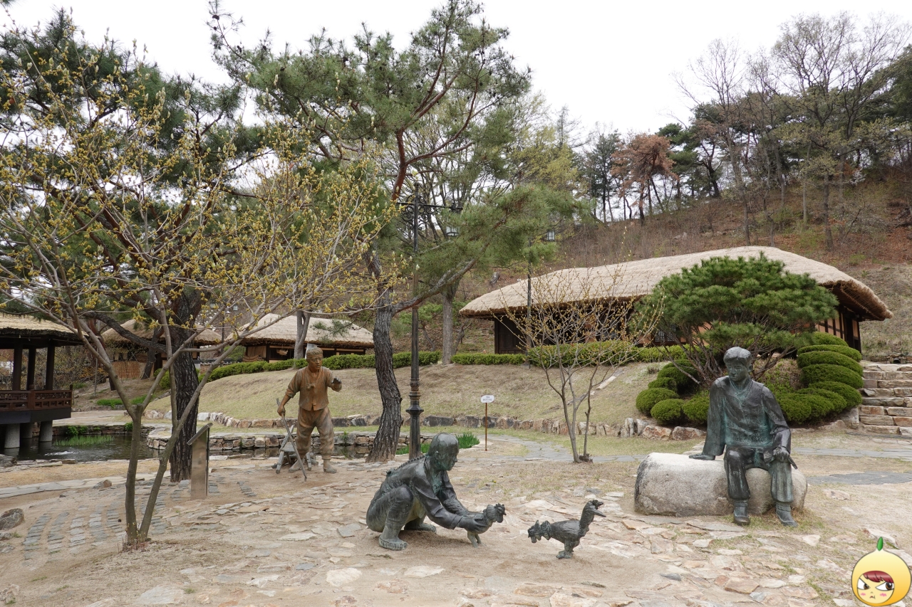 장독대 앞에는 키재기를 하고 있는 사람들이 있다. 이들은 소설 봄봄의 등장인물이다. 이번에 알게 된 사실, 소설 속에 나오는 김봉필은 실레마을에서 욕필이로 통했단 실존인물이었다. 그는 당시 딸만 여러 낳아 데릴사위를 들여 부려먹었다. 한들주막에서 술을 마시고 백두고개를 넘어오던 김유정이 점순이와 혼례를 시켜주지 않는다면 장인과 주인공이 싸우는 장면을 메모해 뒀다가 소설 봄봄을 썼다고 한다.