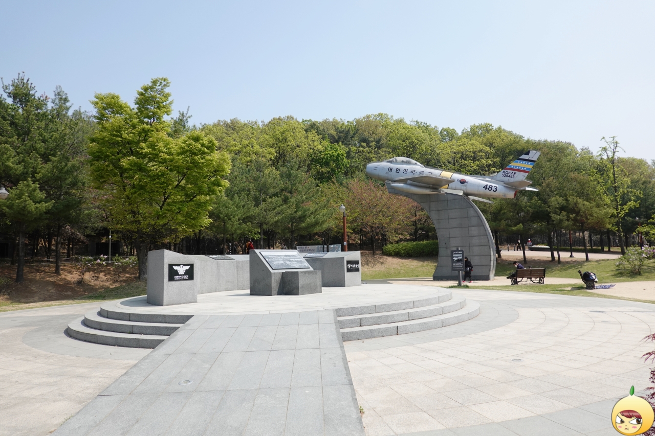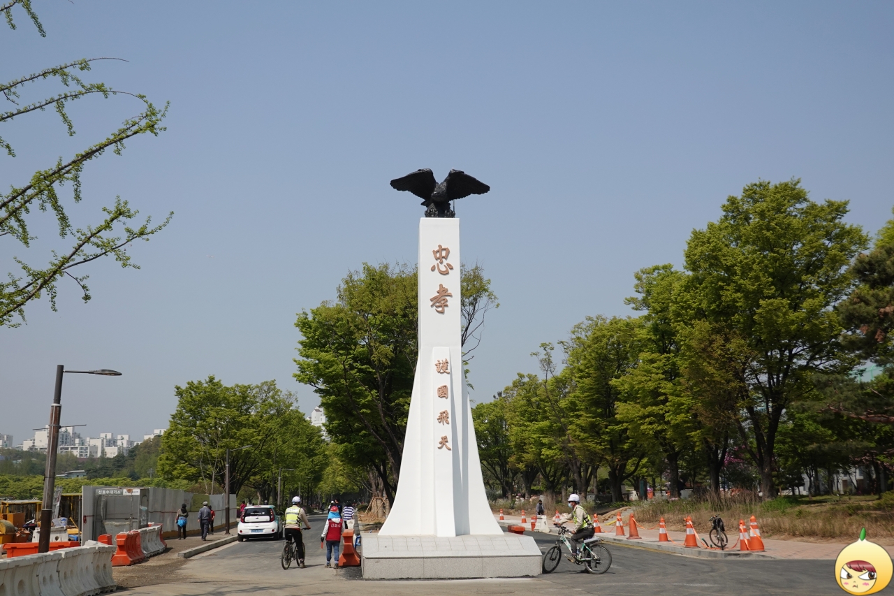 사진 속 탑은 후문 방향에 세워진 탑으로 공군을 상징하는 보라매가 위용을 과시하며 앉아 있고, 그 아래에는 충효와 호국비천이 새겨져 있다.