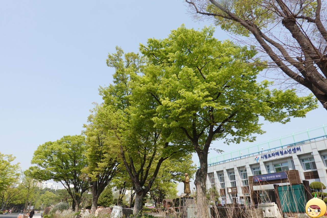 보라매공원에서 겹벚꽃을 보기 위해서는 에어파크라는 곳으로 가야 한다. 보라매청소년센터를 지나는 중에 만난 나무. 쨍한 녹색잎으로 변하기 전, 초록보다는 연두빛에 가까운 나뭇잎을 엄청 좋아한다. 봄에는 색색의 꽃들이 가득 피지만, 연한 초록빛의 나뭇잎도 지금이 아니면 볼 수 없다. 고로 눈에 많이 넣어둬야 한다.