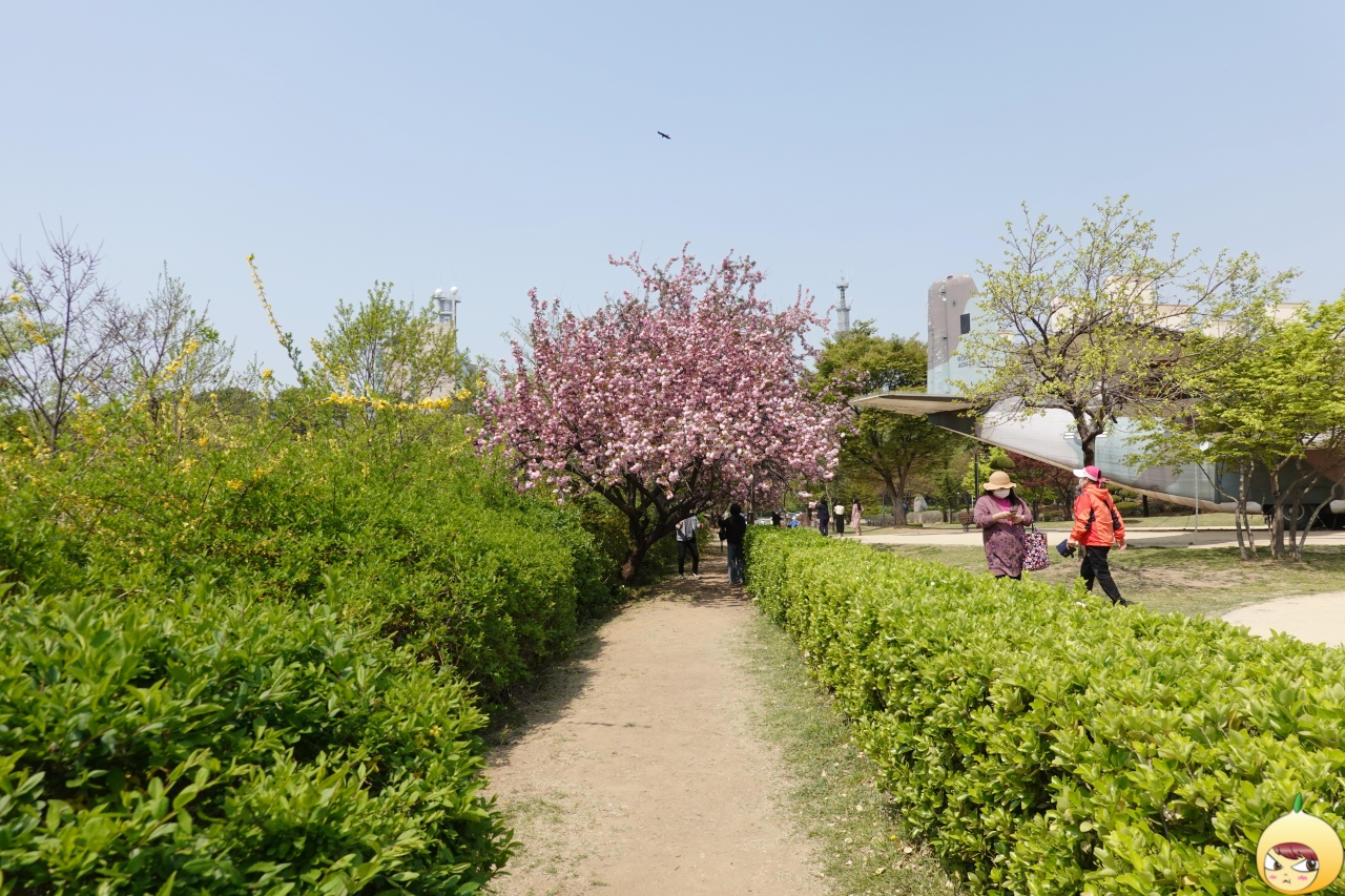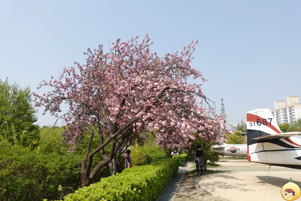 보라매공원 에어파크는 공군에서 실제 사용해오던 퇴역한 군용비행기가 전시되어 있는 곳이다. 밀리터리 덕후가 아니기에, 비행기보다는 그 옆에 있는 꽃에 시선이 꽂혔다. 딱 보자마자, 아하~ 겹벚꽃이로구나.