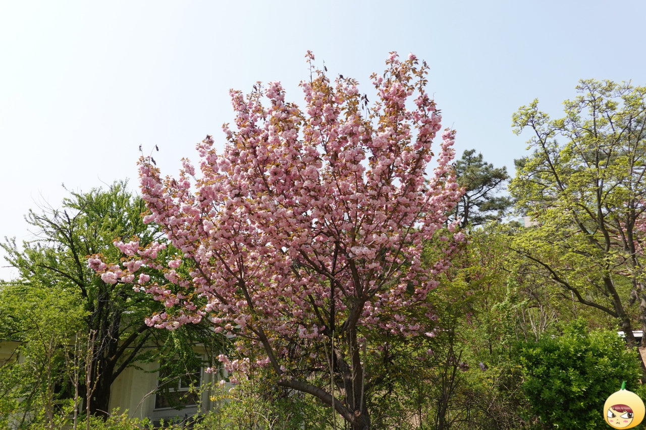 한그루여도 좋다. 흐드러지게 핀 겹벚꽃을 볼 수 있으니깐. 겹벚꽃은 이름 그대로 꽃잎이 여러 겹으로 피는 벚꽃이다. 벚꽃에 비해 꽃잎이 많고, 좀 더 핑크빛에 가깝다. 알고 보니 겹벚꽃이지, 모르고 봤다면 전혀 다른 꽃인 줄 알았을 거다.