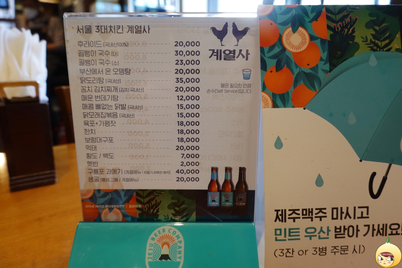 누가 정했는지 모르지만, 계열사는 서울 3대 치킨집 중 하나다. 워낙 유명한 곳이기도 하고, 방송에 여러번 나와서 코시국 전에는 웨이팅은 필수였다고 한다. 코시국에는 기다림없이 바로 들어 올 수 있었는데, 거리두기도 끝났으니 다시 줄서서 기다려야 할 거다.