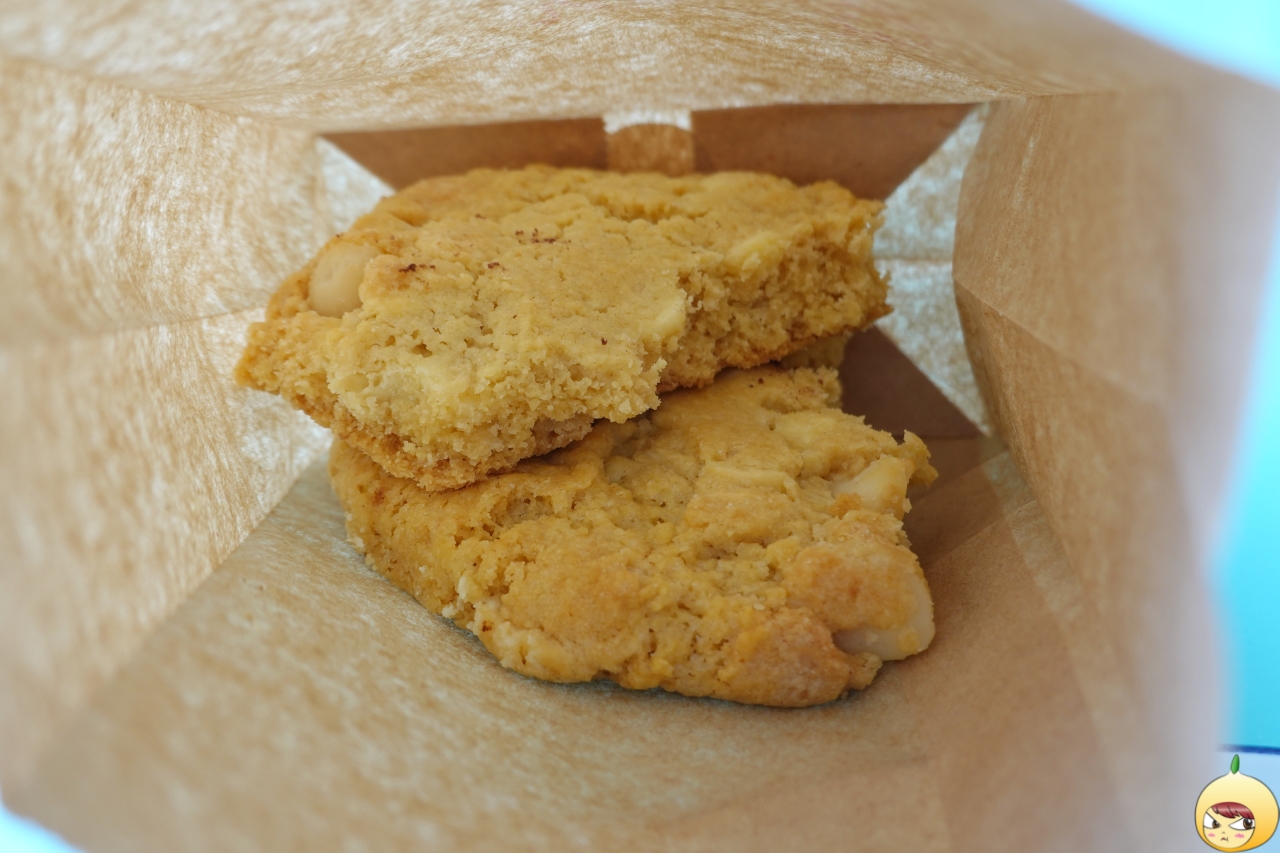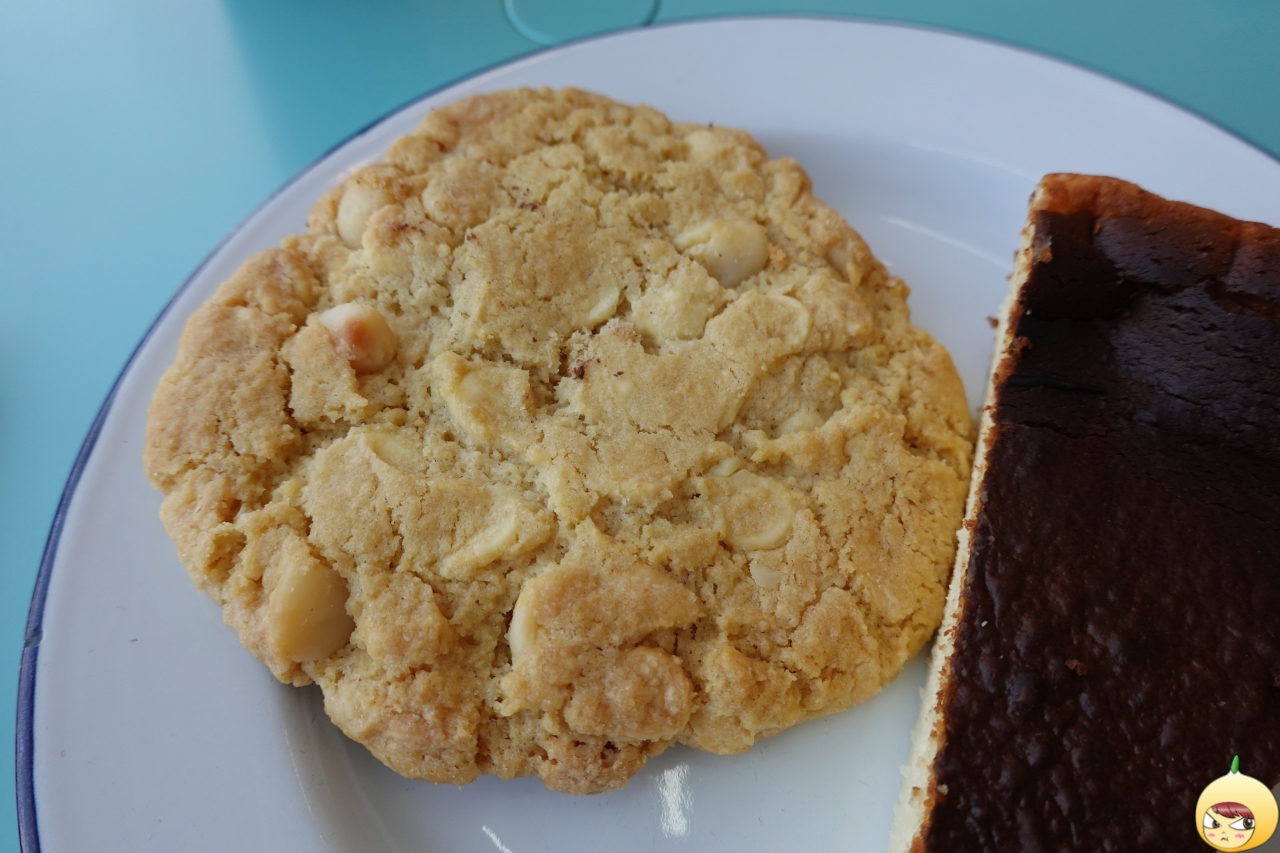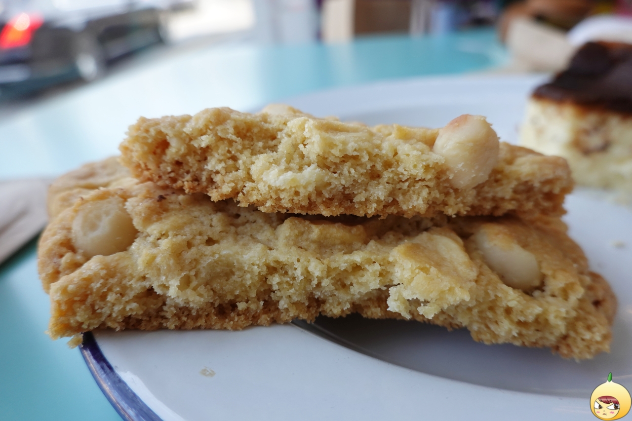쿠키가 얼마나 꾸덕한지는 반으로 잘라보면 알 수 있다. 역시 예상대로 마카다미아 화이트초콜렛쿠키(4,000원)는 꾸덕꾸덕하다. 바스크치즈케이크가 워낙 양이 많아서 쿠키는 거의 먹지 않고 집으로 가져와 3개로 소분해서 냉동실에 넣었다. 냉동실에서 꺼내자마자 먹지 않고 두어시간 뒀다가 먹으면 꾸덕한 쿠키맛을 그대로 느낄 수 있다. 마카다미아의 고소함과 화이트초콜릿의 달달함이 조화롭다.